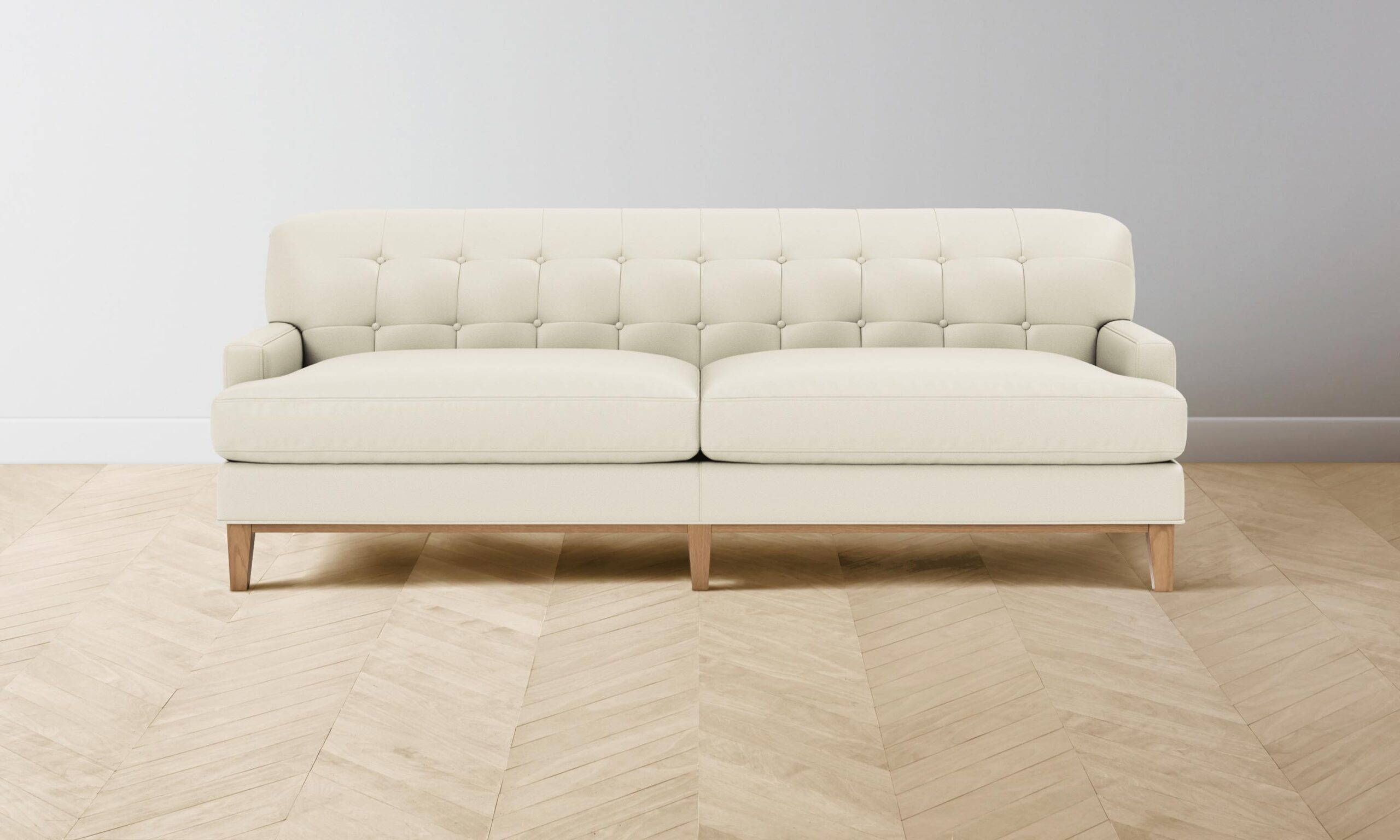 With its button-tufted seat back, the Ludlow sofa exudes a mid-century charm. Its deep, reclined seat is framed by linear arms and set upon elegant tapered legs.