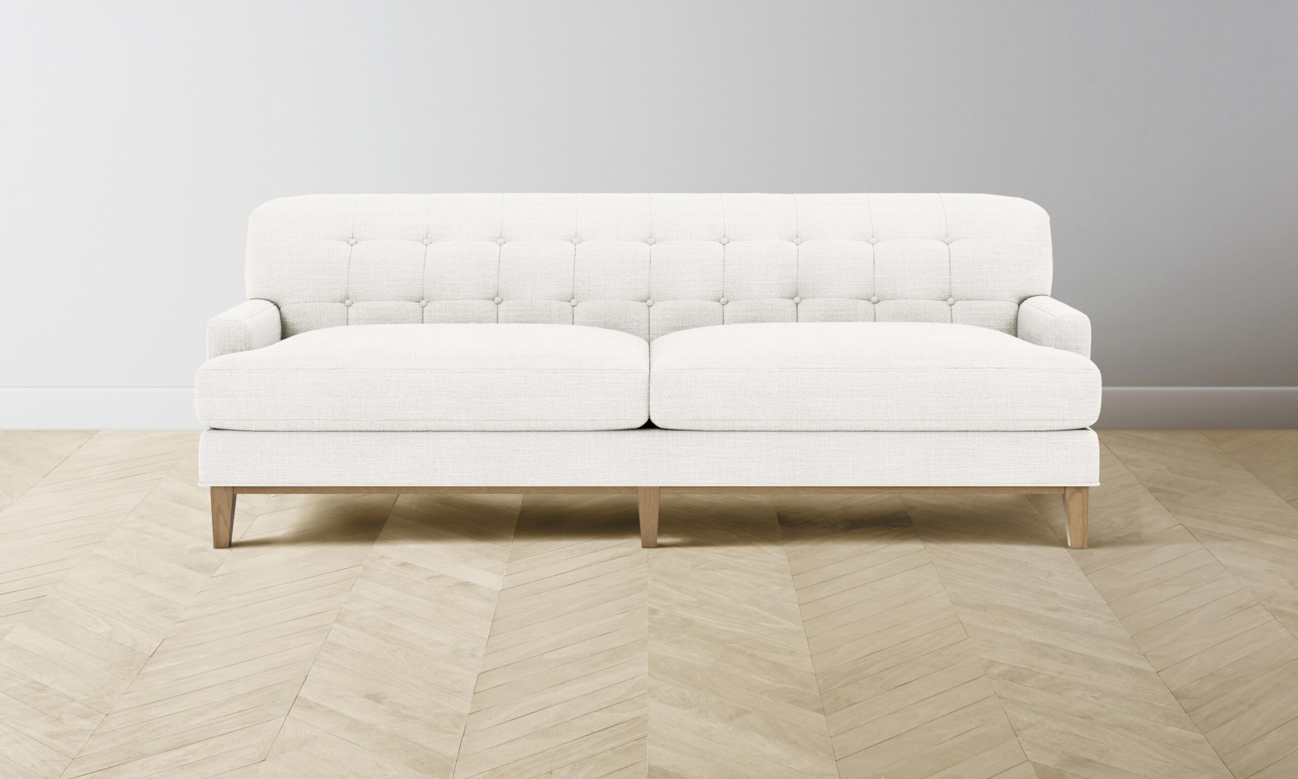 With its button-tufted seat back, the Ludlow sofa exudes a mid-century charm. Its deep, reclined seat is framed by linear arms and set upon elegant tapered legs.