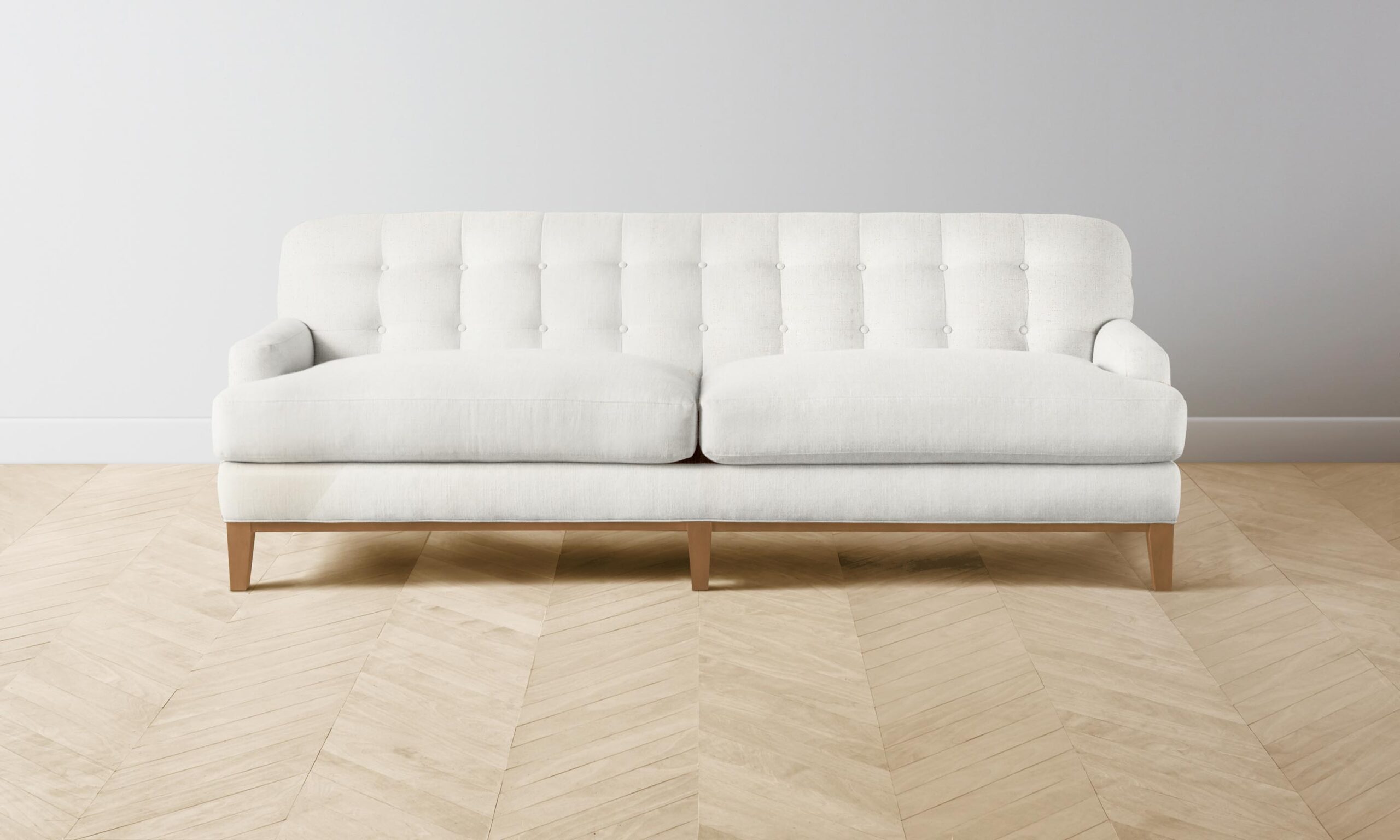 With its button-tufted seat back, the Ludlow sofa exudes a mid-century charm. Its deep, reclined seat is framed by linear arms and set upon elegant tapered legs.