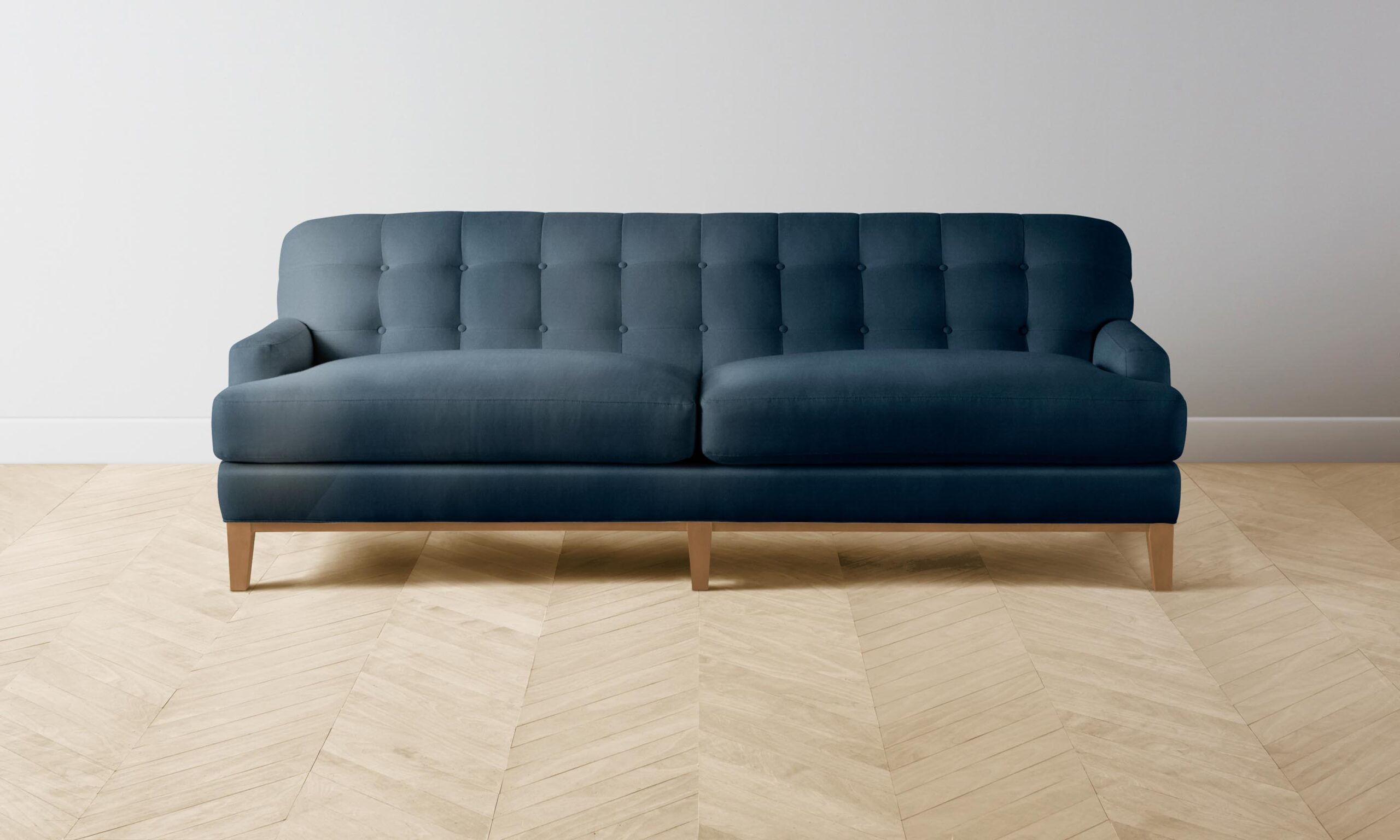 With its button-tufted seat back, the Ludlow sofa exudes a mid-century charm. Its deep, reclined seat is framed by linear arms and set upon elegant tapered legs.