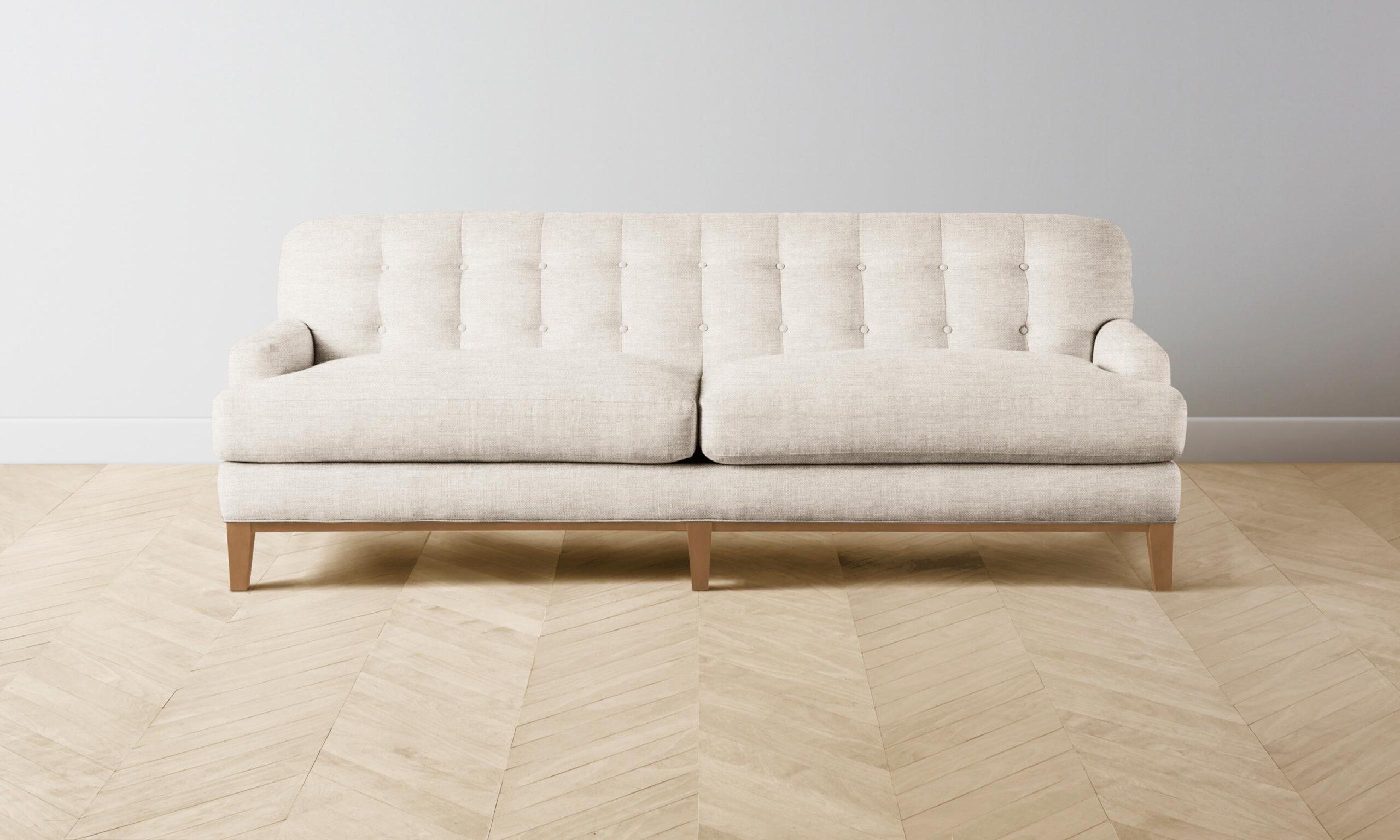 With its button-tufted seat back, the Ludlow sofa exudes a mid-century charm. Its deep, reclined seat is framed by linear arms and set upon elegant tapered legs.