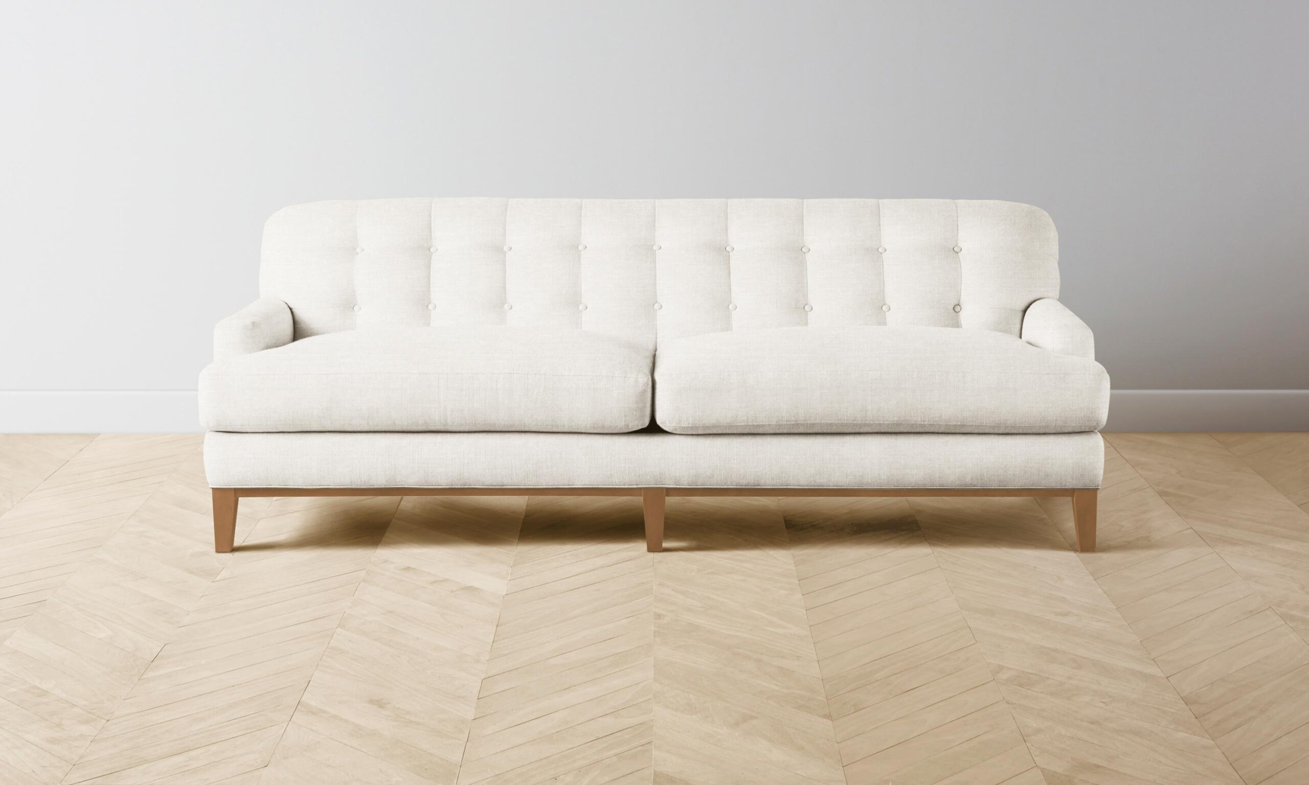 With its button-tufted seat back, the Ludlow sofa exudes a mid-century charm. Its deep, reclined seat is framed by linear arms and set upon elegant tapered legs.