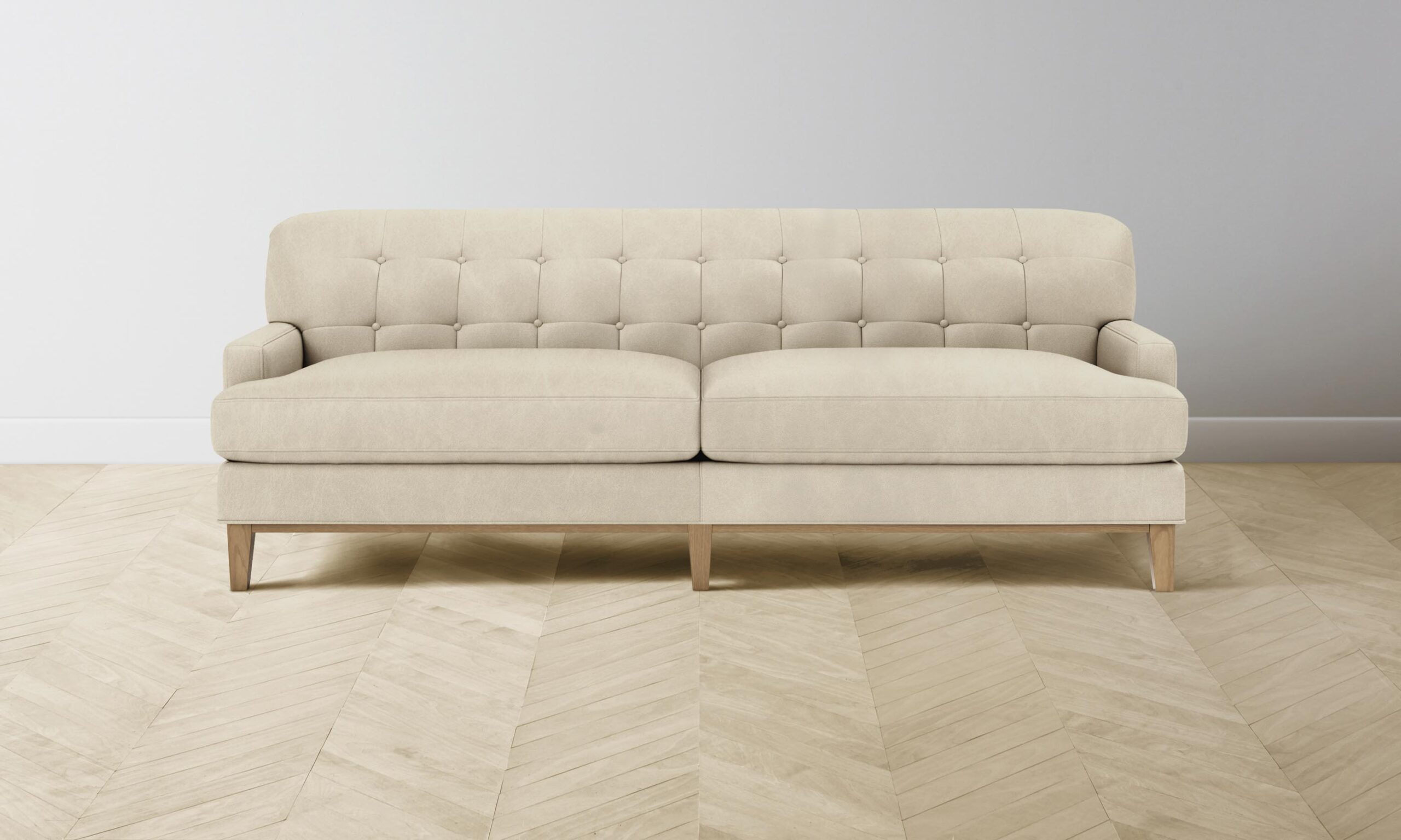 With its button-tufted seat back, the Ludlow sofa exudes a mid-century charm. Its deep, reclined seat is framed by linear arms and set upon elegant tapered legs.