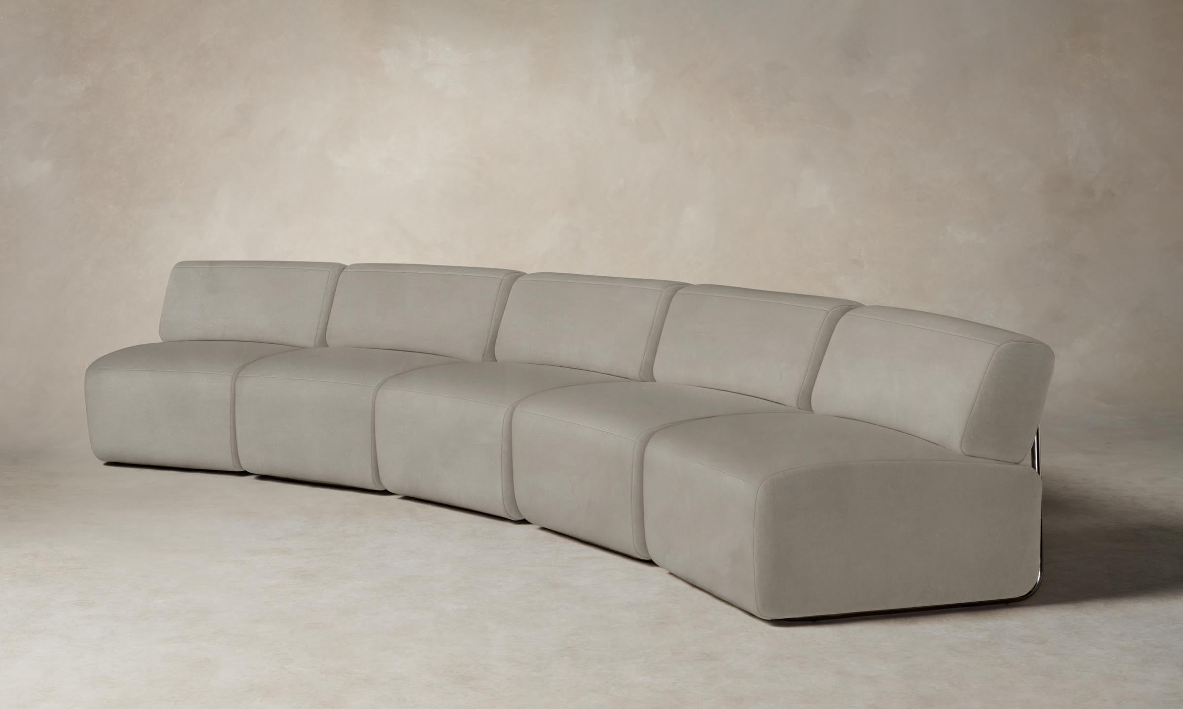 The Miles modular sectional is a bold articulation of modernist design influences. Resting upon a polished chrome frame, its voluminous seat cushions come together into a beautiful curved silhouette.