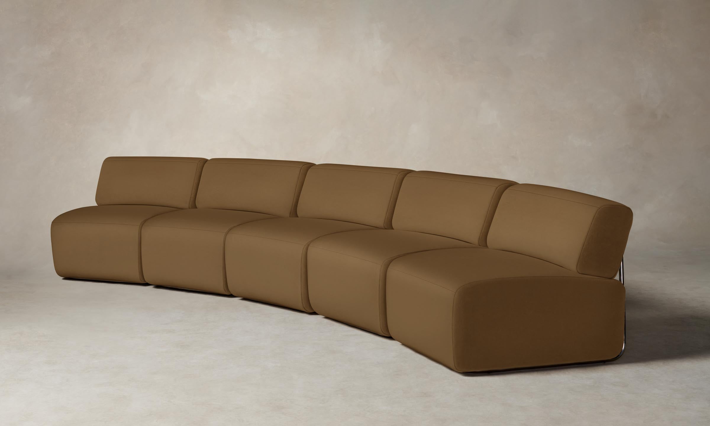 The Miles modular sectional is a bold articulation of modernist design influences. Resting upon a polished chrome frame, its voluminous seat cushions come together into a beautiful curved silhouette.
