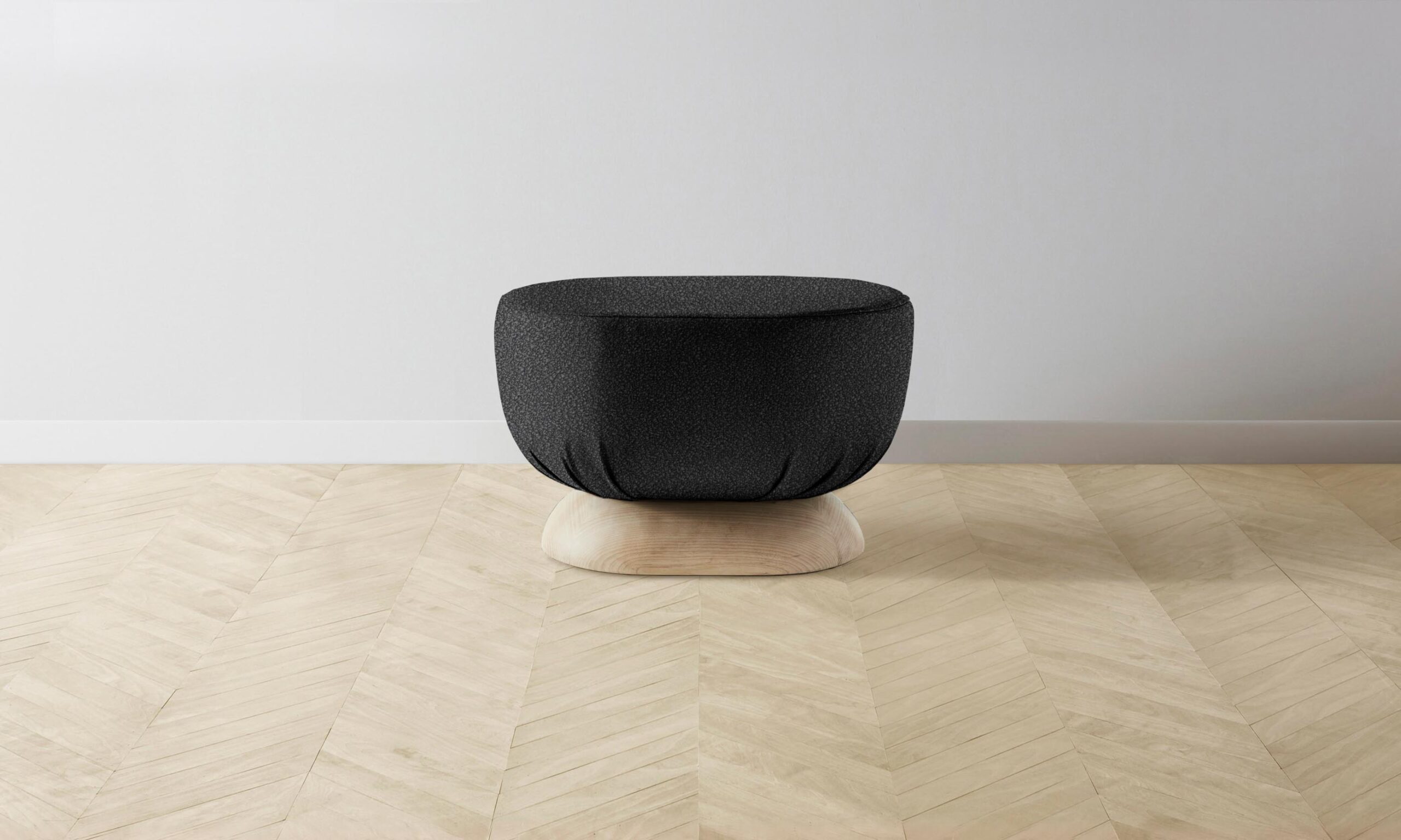 Characterized by its distinctive sculptural shape, the Mott stool is traced with smooth curves on all sides. It has a masterfully upholstered seat and sits atop an ash base.