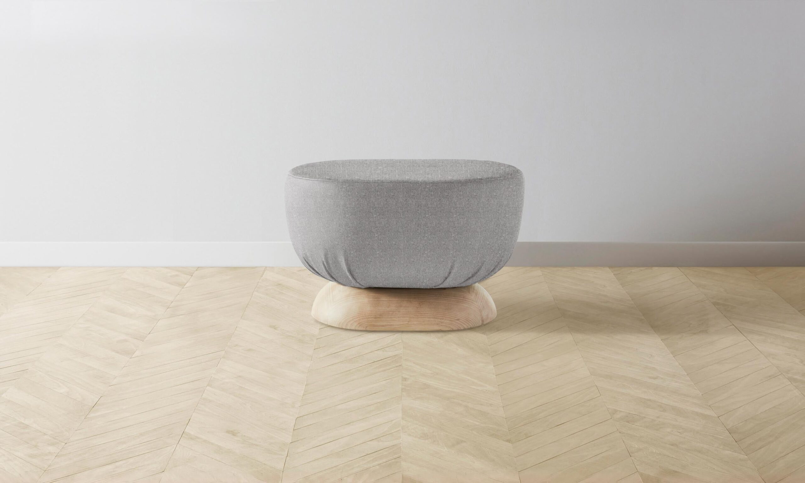 Characterized by its distinctive sculptural shape, the Mott stool is traced with smooth curves on all sides. It has a masterfully upholstered seat and sits atop an ash base.