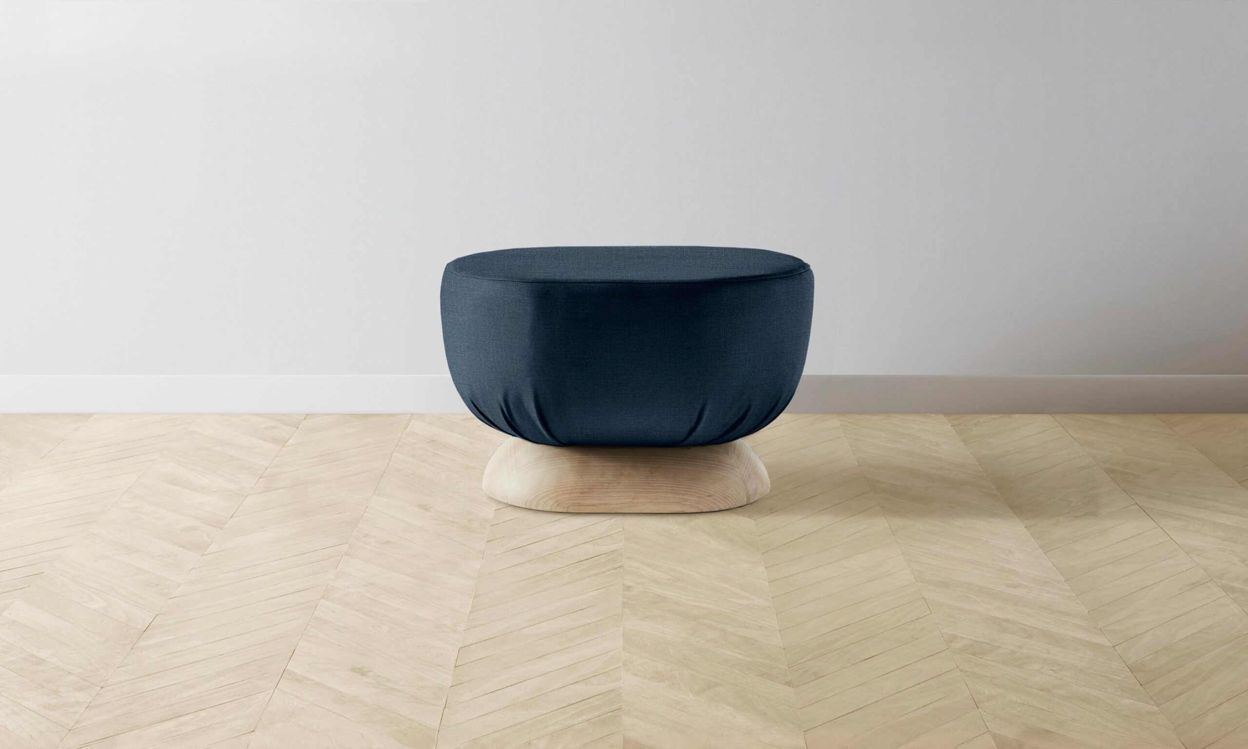 Characterized by its distinctive sculptural shape, the Mott stool is traced with smooth curves on all sides. It has a masterfully upholstered seat and sits atop an ash base.
