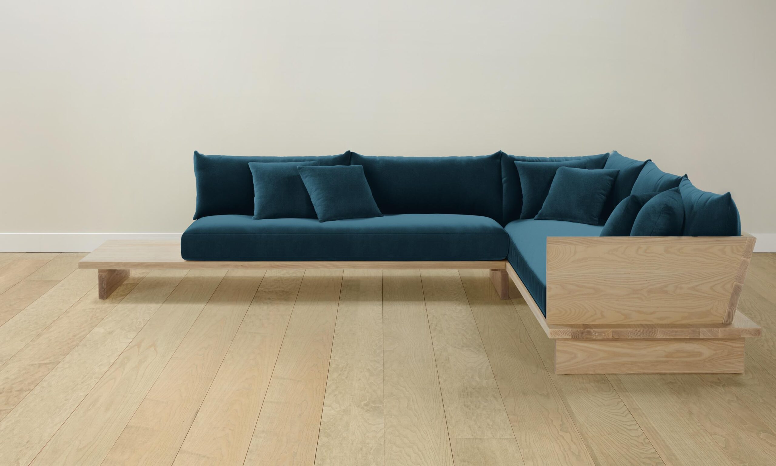From the woodwork to the tailoring, every element of the Muir sectional is a display of exquisite artisanship. Its angular frame extends beyond the seat cushion, allowing space for decorative objects or necessities.