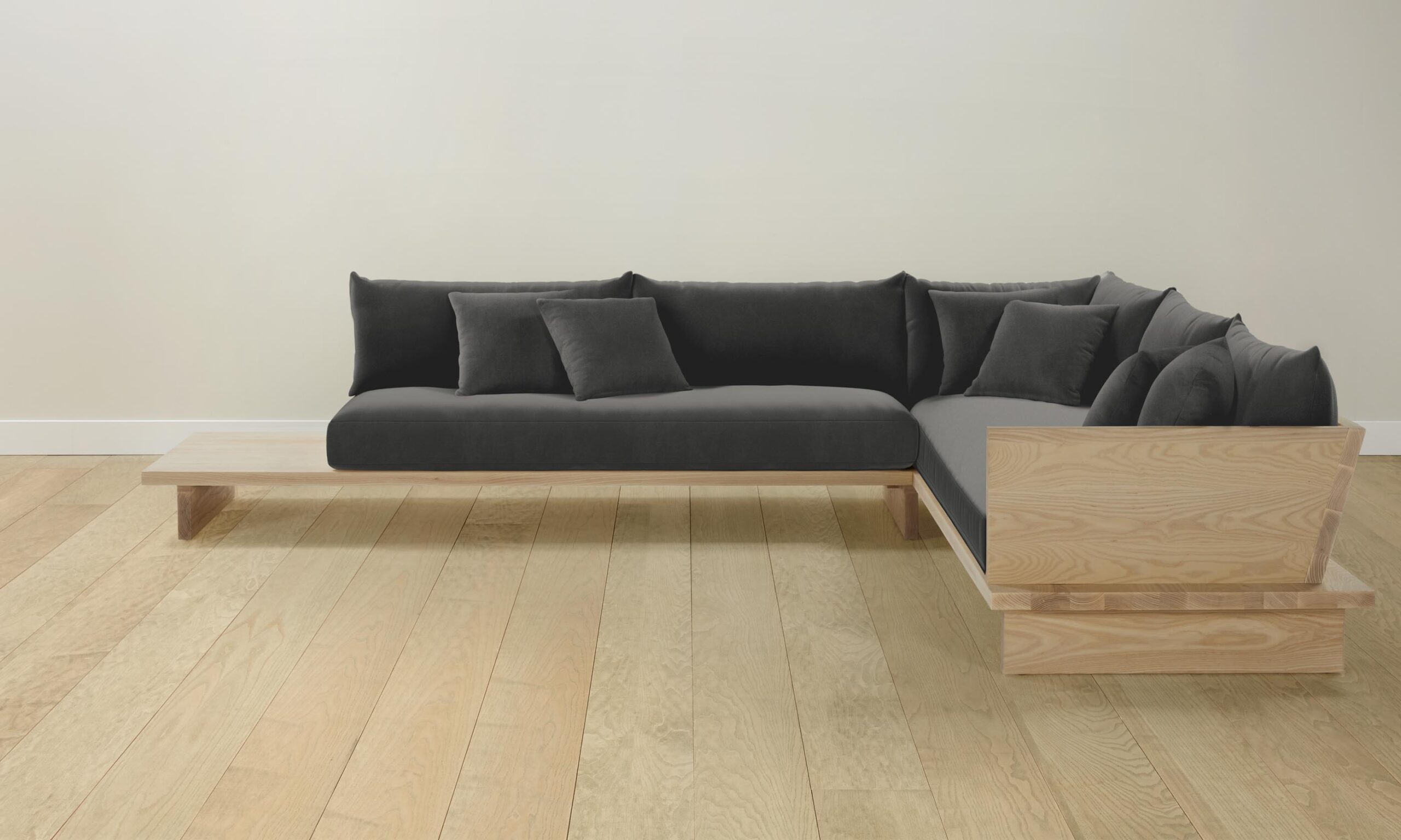 From the woodwork to the tailoring, every element of the Muir sectional is a display of exquisite artisanship. Its angular frame extends beyond the seat cushion, allowing space for decorative objects or necessities.