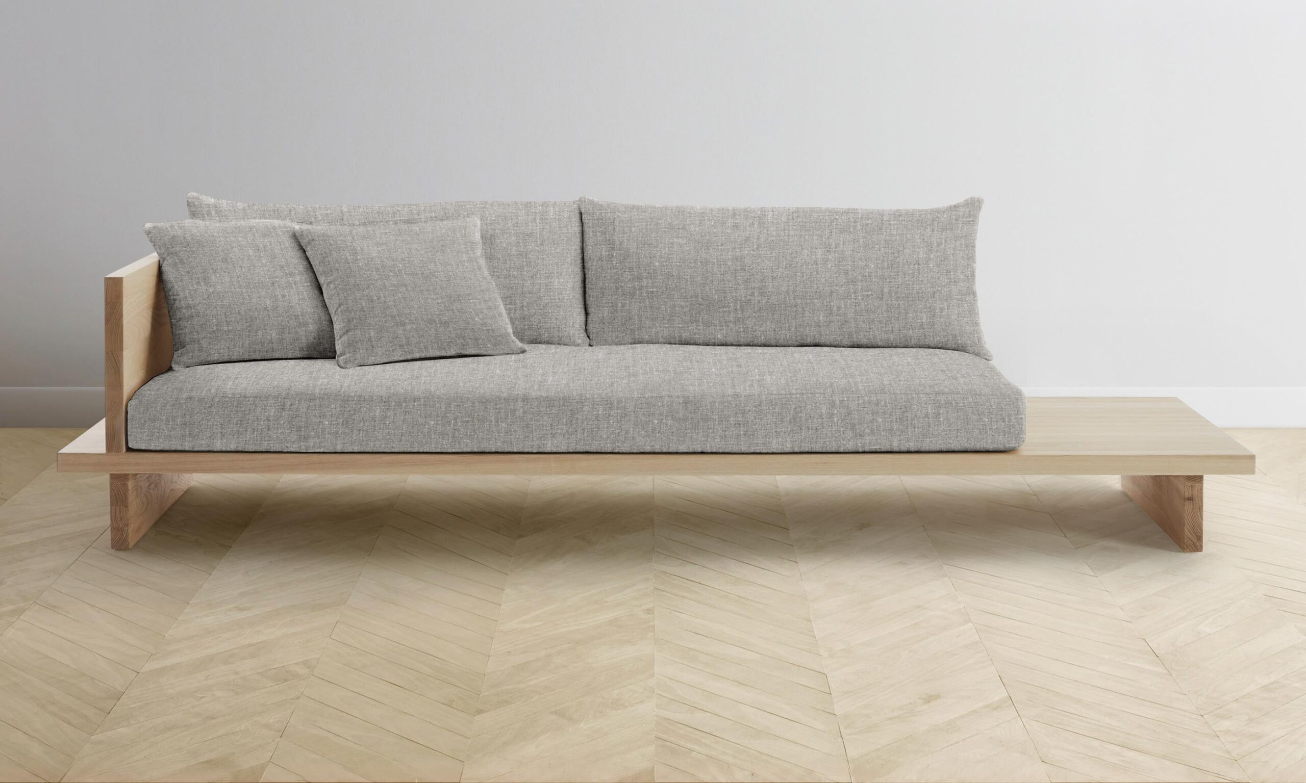 From the woodwork to the tailoring, every element of the Muir sofa is a display of exquisite artisanship. Its angular frame extends beyond the seat cushion, allowing space for decorative objects or necessities.