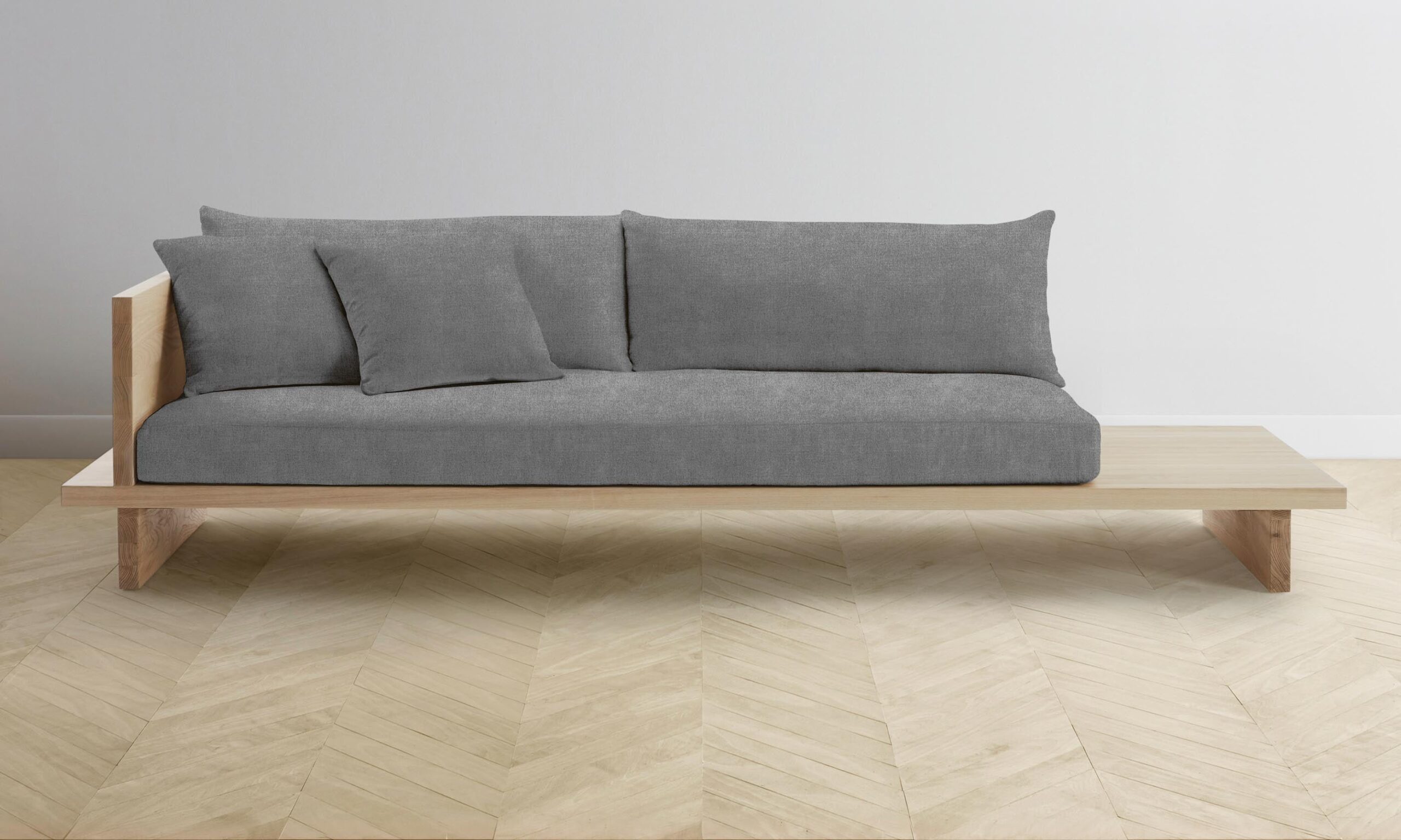 From the woodwork to the tailoring, every element of the Muir sofa is a display of exquisite artisanship. Its angular frame extends beyond the seat cushion, allowing space for decorative objects or necessities.