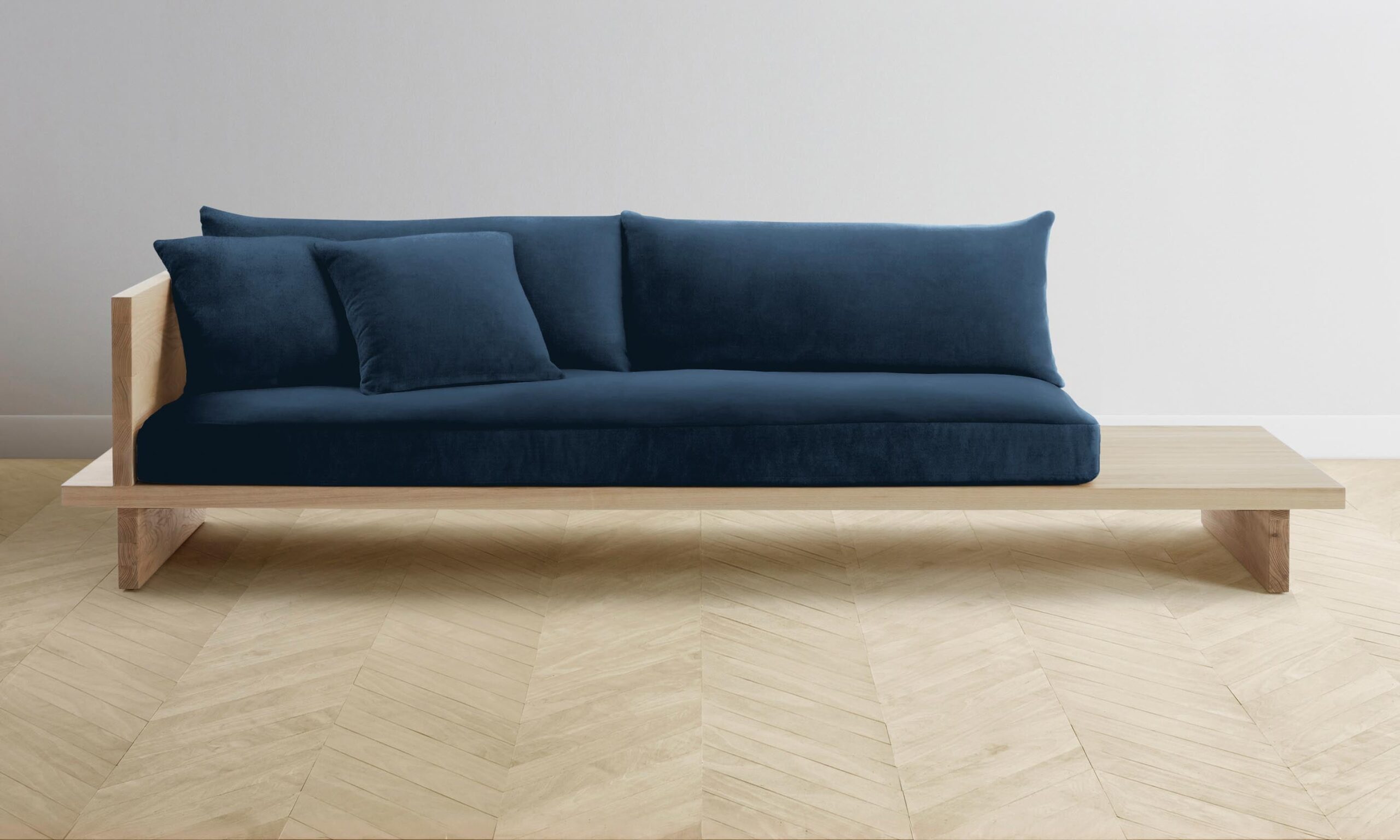 From the woodwork to the tailoring, every element of the Muir sofa is a display of exquisite artisanship. Its angular frame extends beyond the seat cushion, allowing space for decorative objects or necessities.