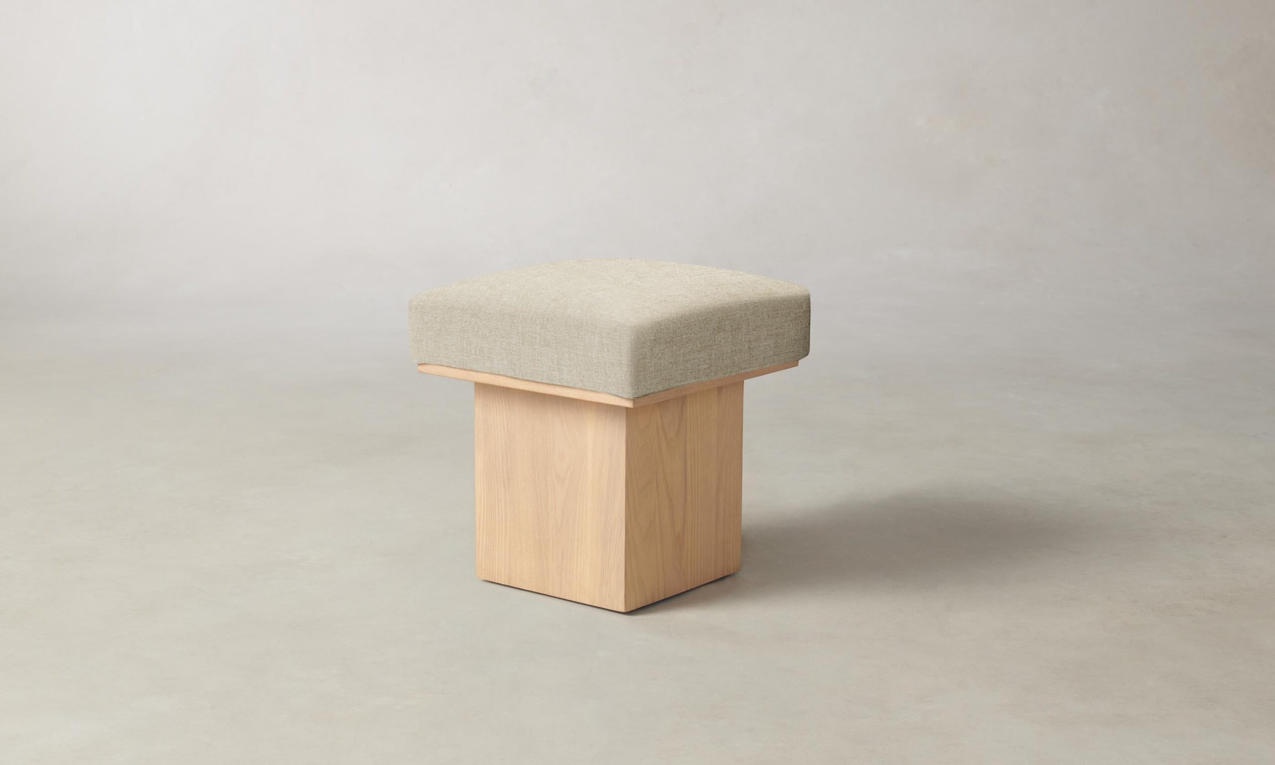 The Mulberry ottoman’s geometric silhouette exudes sophistication. It has a masterfully upholstered seat cushion that sits atop a striking ash pedestal base.