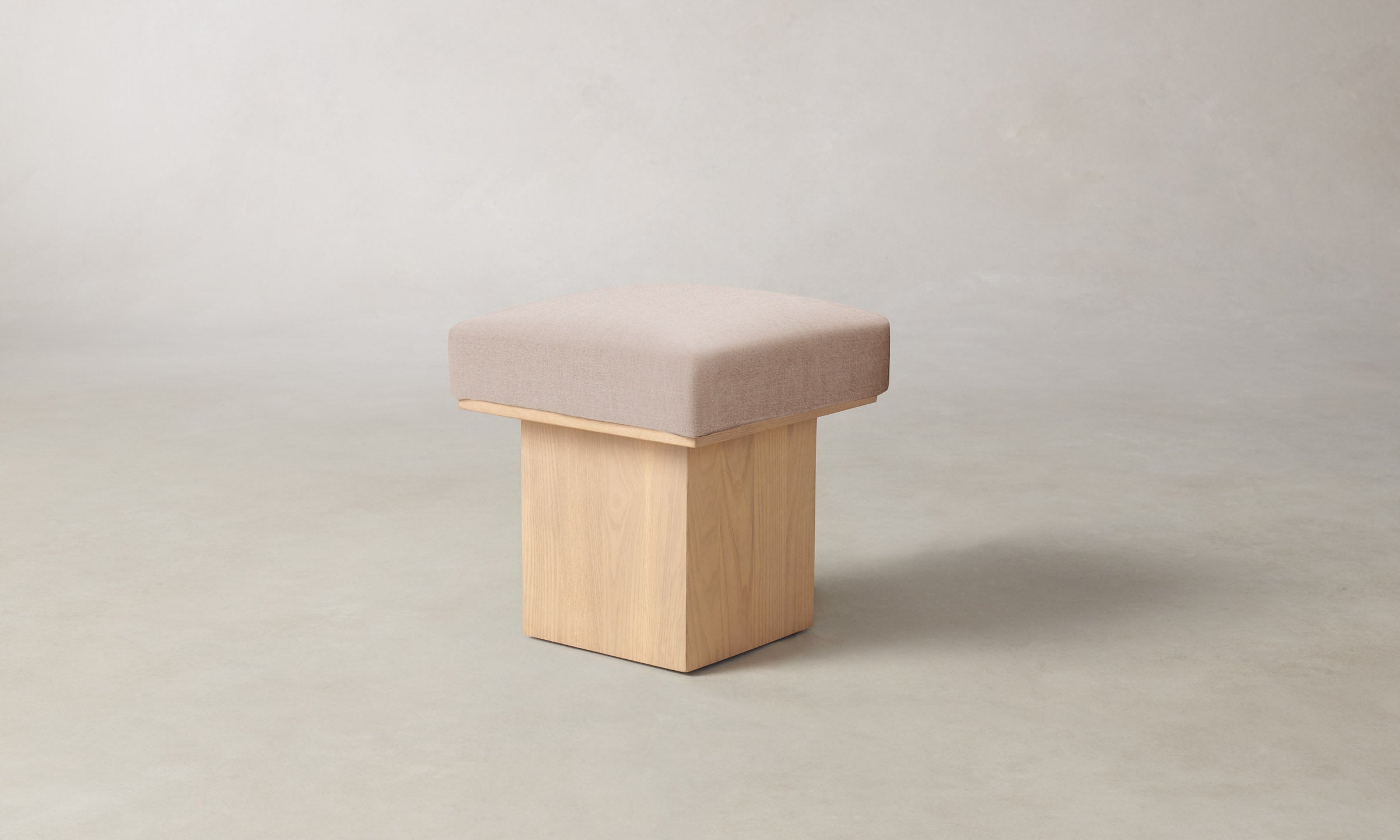 The Mulberry ottoman’s geometric silhouette exudes sophistication. It has a masterfully upholstered seat cushion that sits atop a striking ash pedestal base.