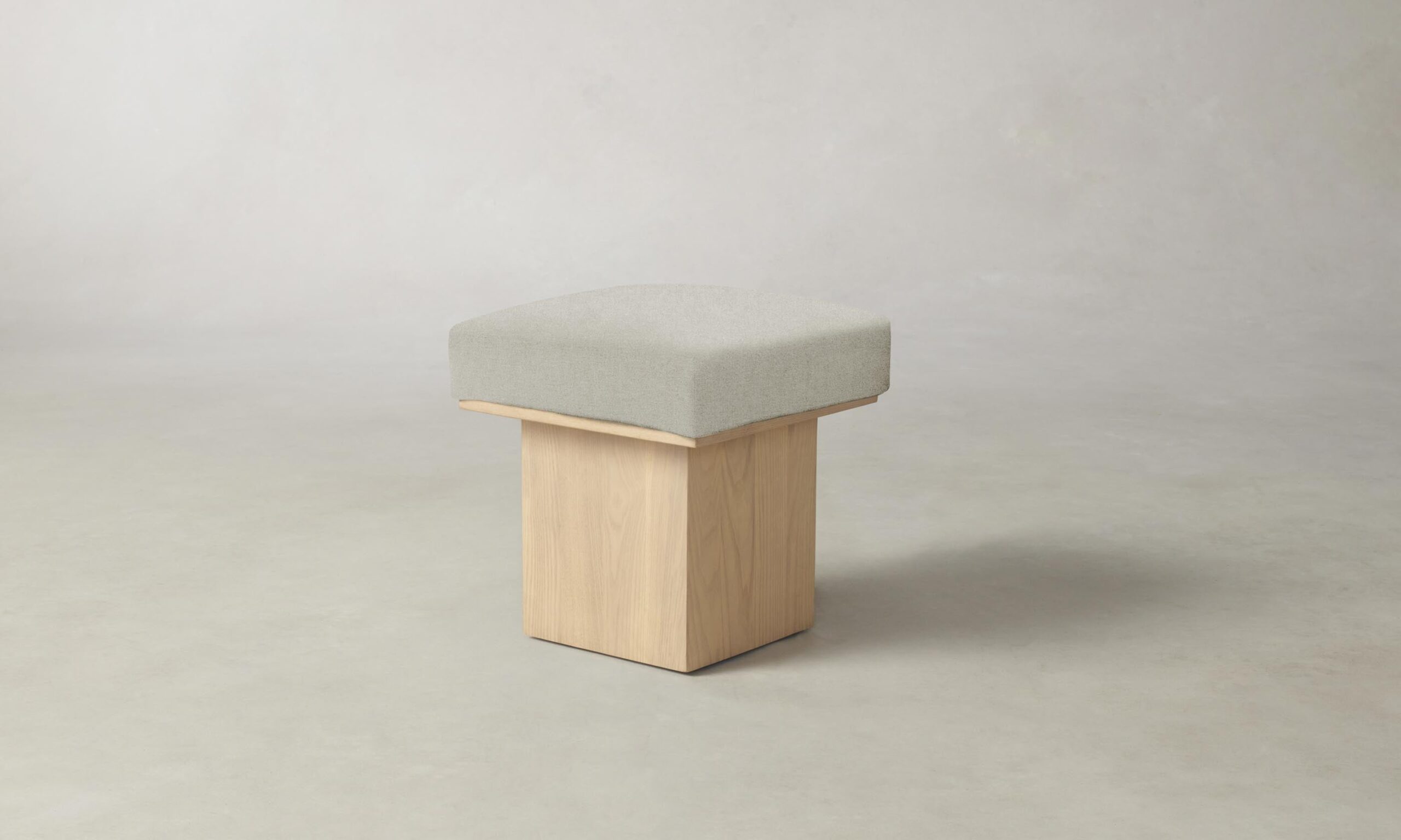 The Mulberry ottoman’s geometric silhouette exudes sophistication. It has a masterfully upholstered seat cushion that sits atop a striking ash pedestal base.