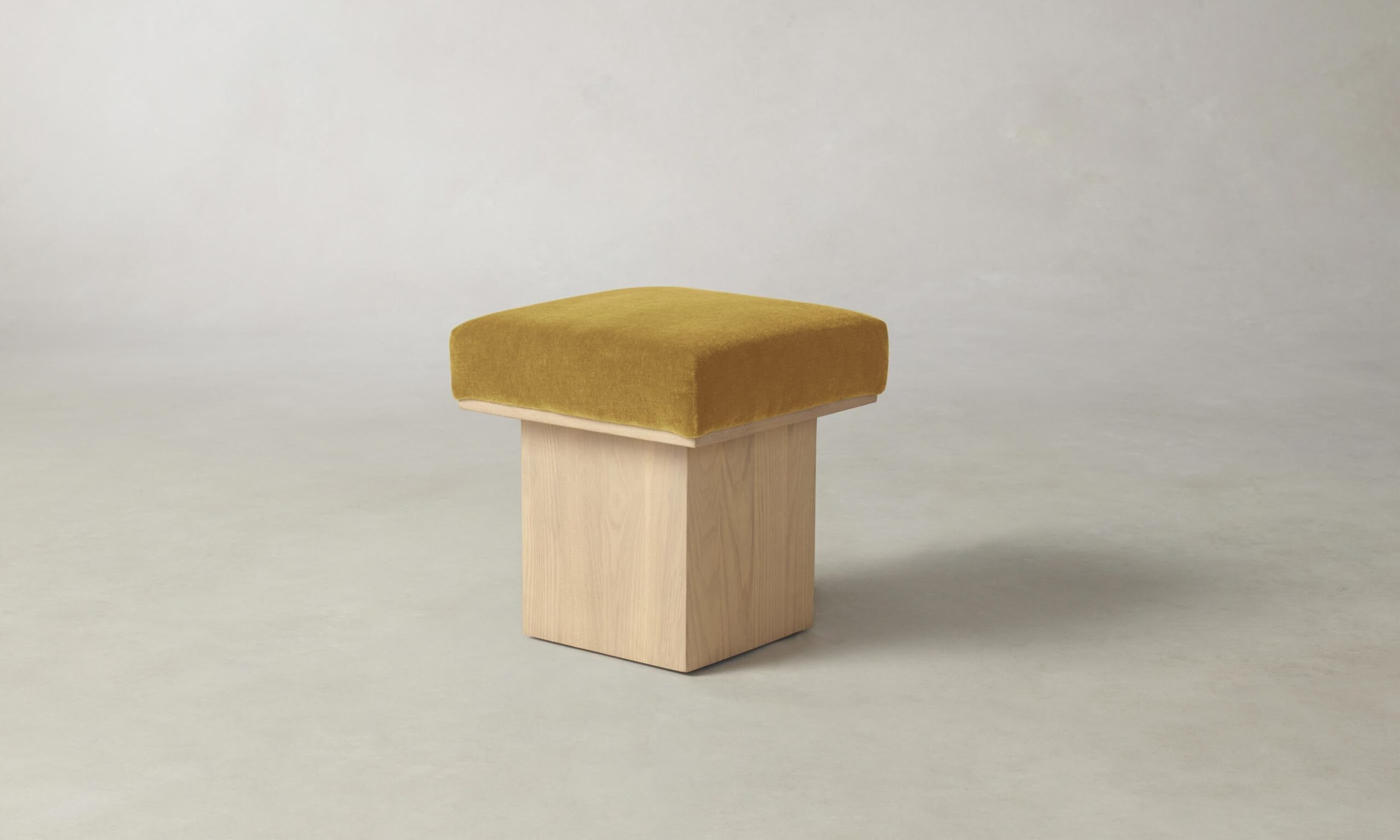 The Mulberry ottoman’s geometric silhouette exudes sophistication. It has a masterfully upholstered seat cushion that sits atop a striking ash pedestal base.