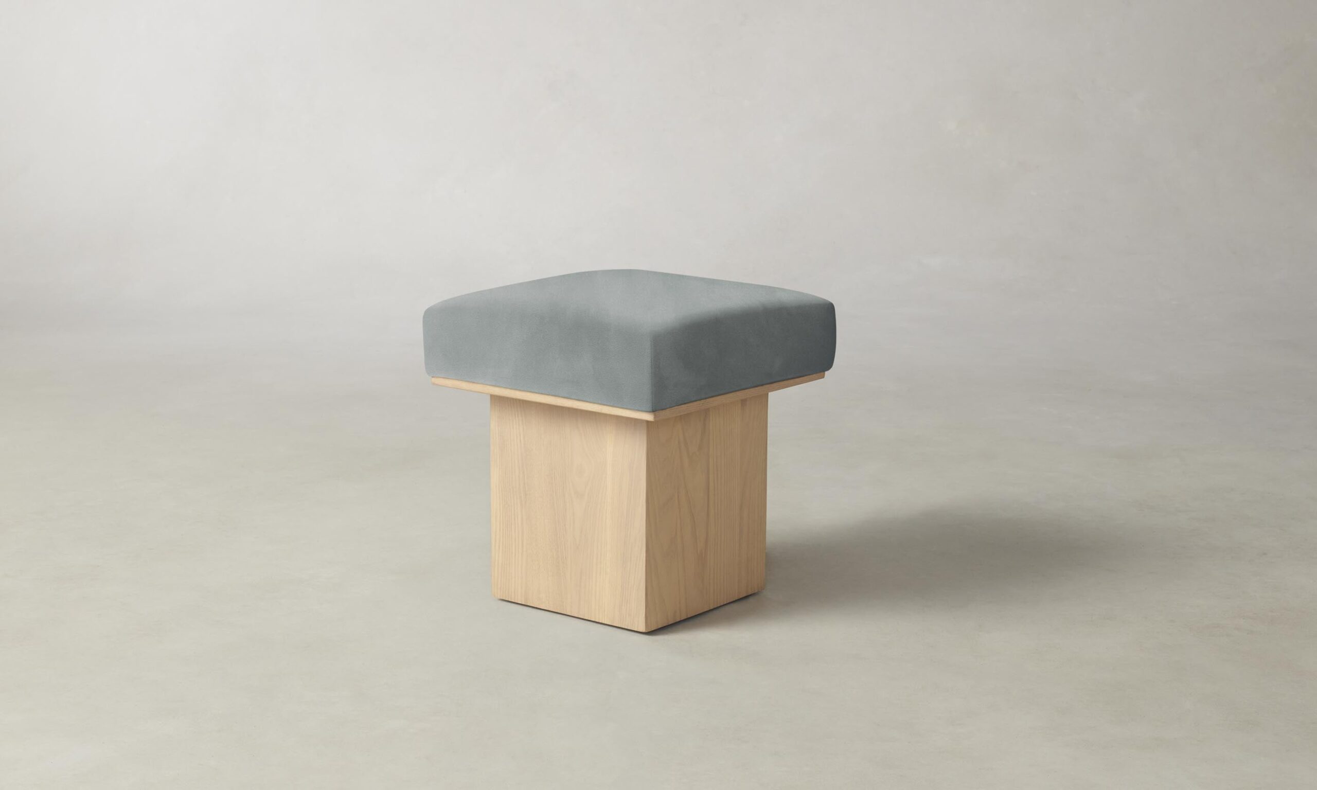 The Mulberry ottoman’s geometric silhouette exudes sophistication. It has a masterfully upholstered seat cushion that sits atop a striking ash pedestal base.