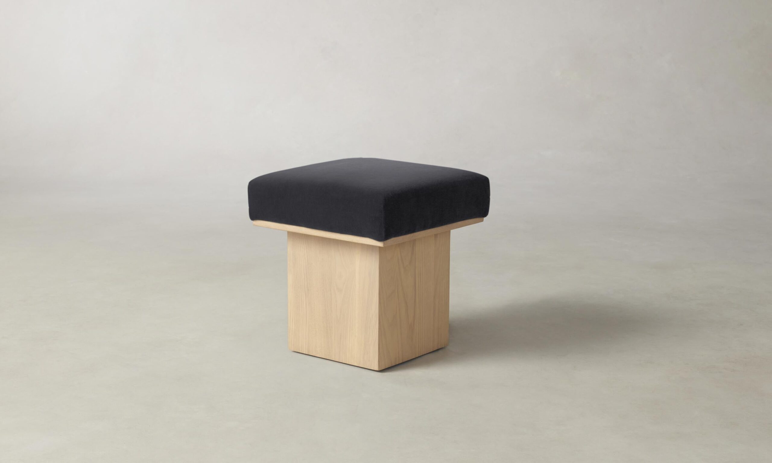 The Mulberry ottoman’s geometric silhouette exudes sophistication. It has a masterfully upholstered seat cushion that sits atop a striking ash pedestal base.