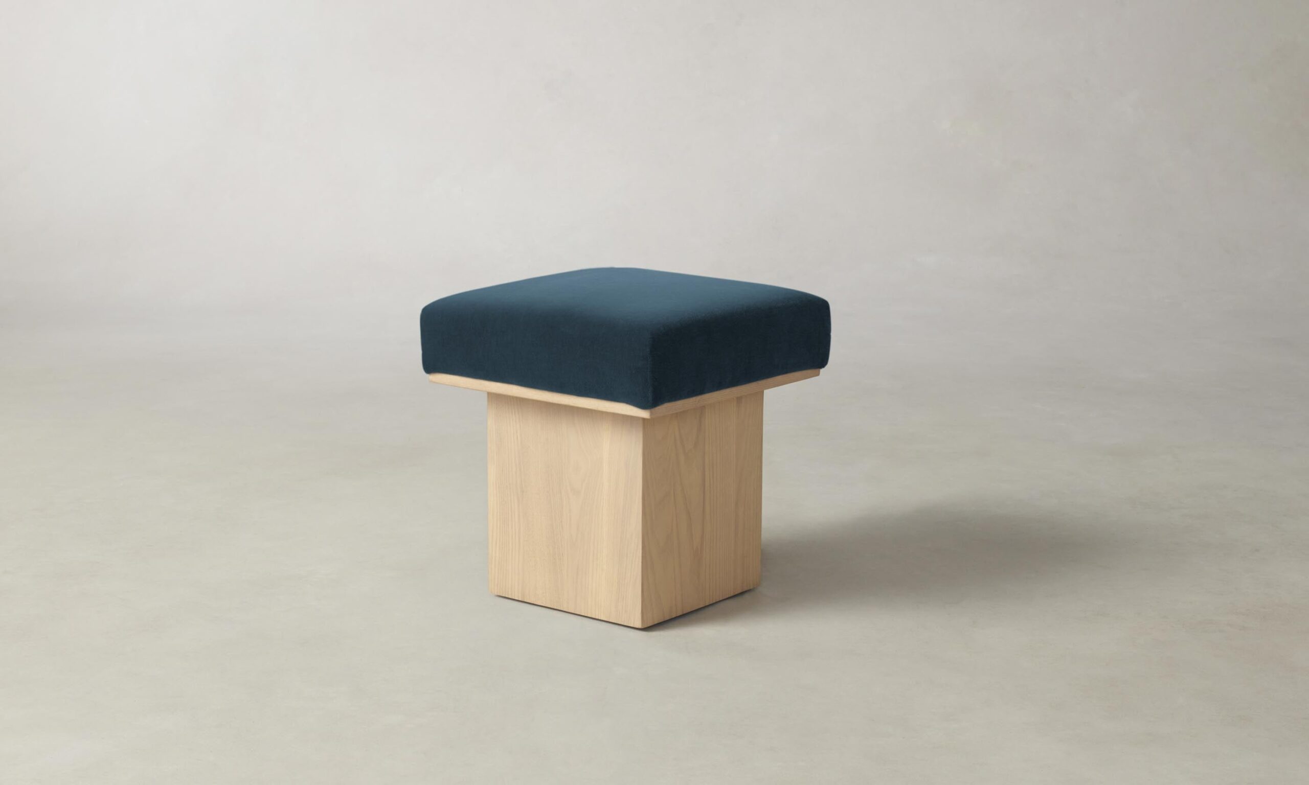 The Mulberry ottoman’s geometric silhouette exudes sophistication. It has a masterfully upholstered seat cushion that sits atop a striking ash pedestal base.