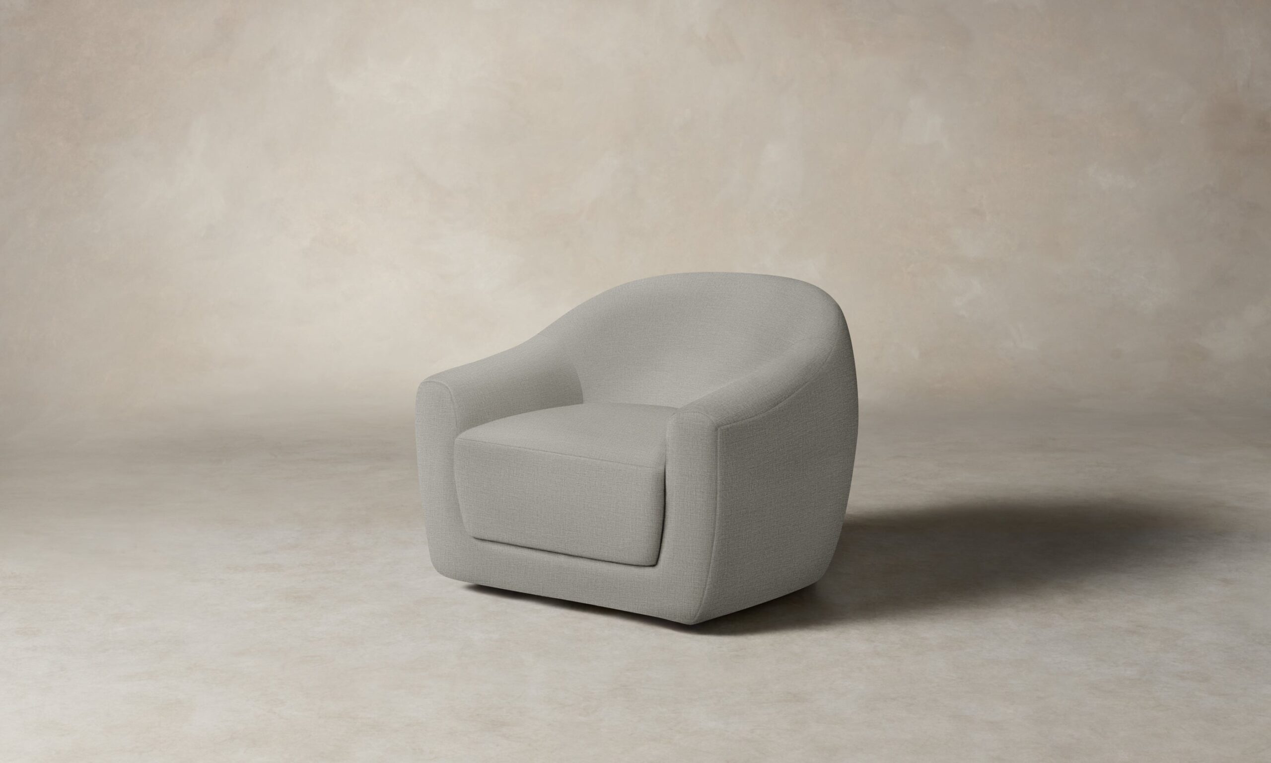 The Oliver swivel chair is soft and inviting in form. Its sloped wraparound arms extend an invitation to sit while its deep seat envelops the body in plush cushioning.