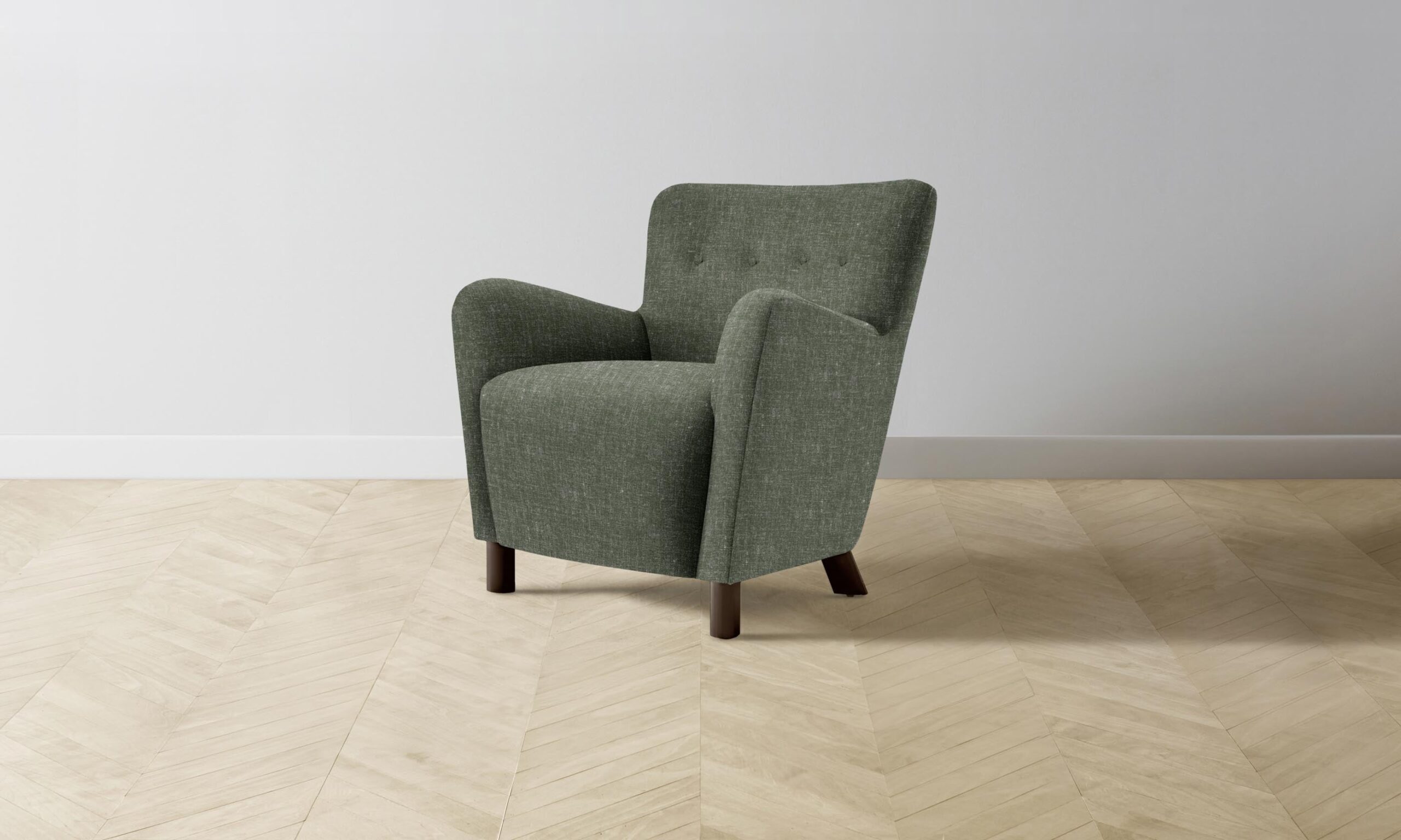 The Perry chair carries mid-century Scandinavian design influences into the home with its sinuous silhouette and button-tufted details. Tight upholstery and blind seams lend the design a smooth finish.
