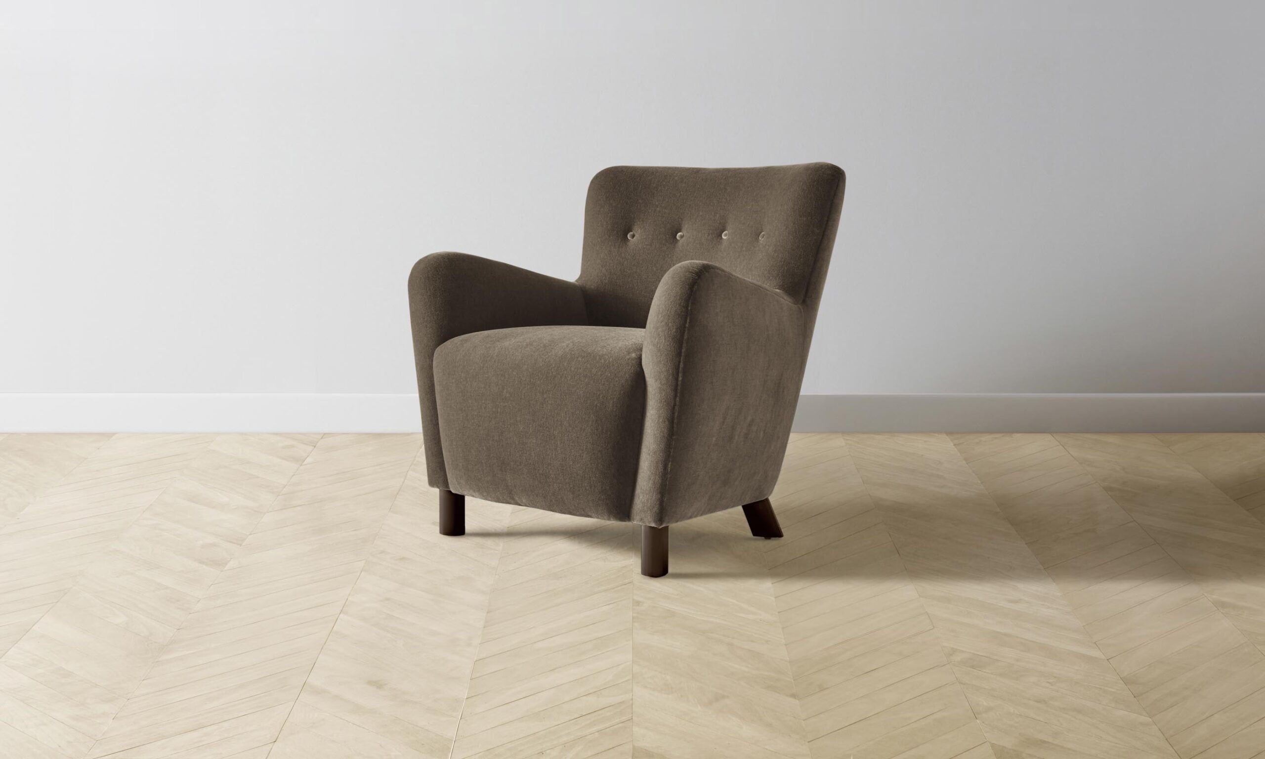 The Perry chair carries mid-century Scandinavian design influences into the home with its sinuous silhouette and button-tufted details. Tight upholstery and blind seams lend the design a smooth finish.