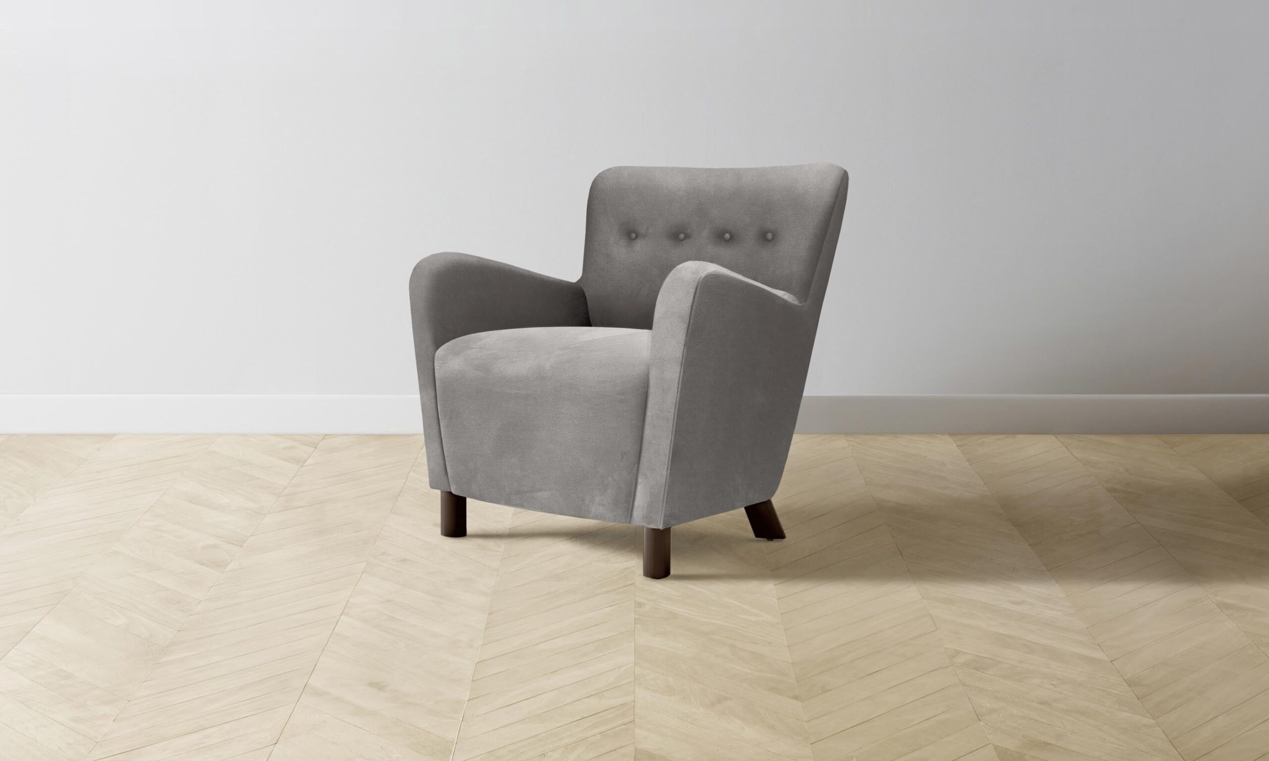The Perry chair carries mid-century Scandinavian design influences into the home with its sinuous silhouette and button-tufted details. Tight upholstery and blind seams lend the design a smooth finish.