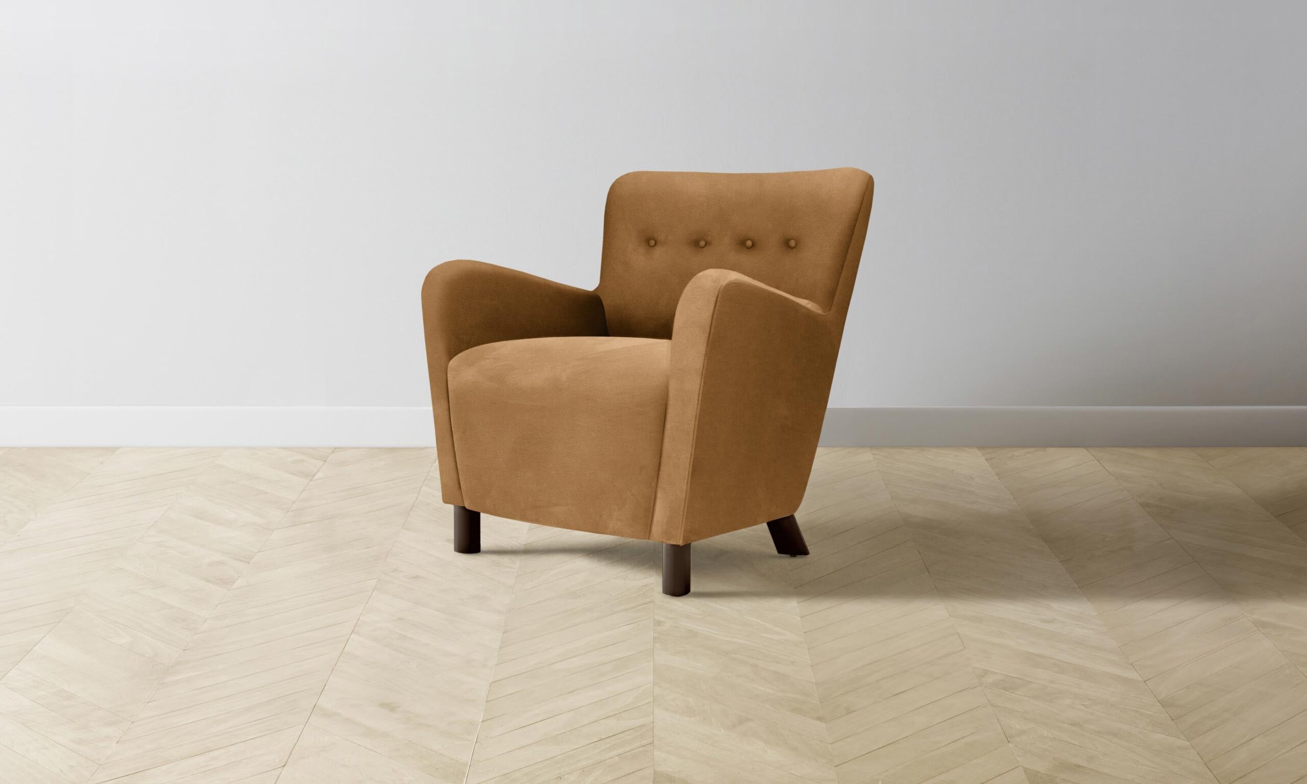 The Perry chair carries mid-century Scandinavian design influences into the home with its sinuous silhouette and button-tufted details. Tight upholstery and blind seams lend the design a smooth finish.
