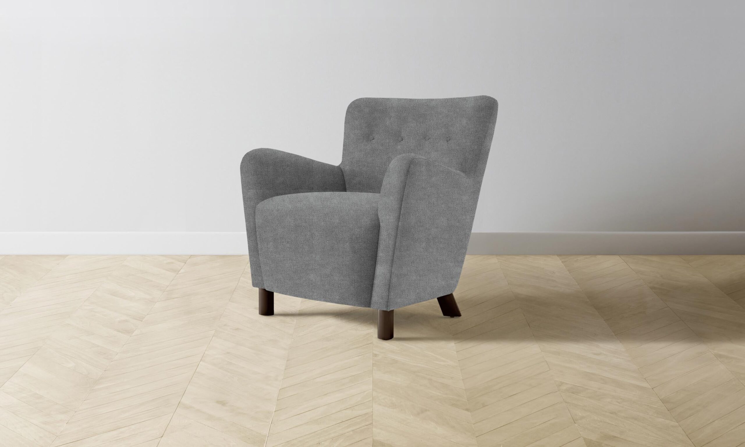 The Perry chair carries mid-century Scandinavian design influences into the home with its sinuous silhouette and button-tufted details. Tight upholstery and blind seams lend the design a smooth finish.