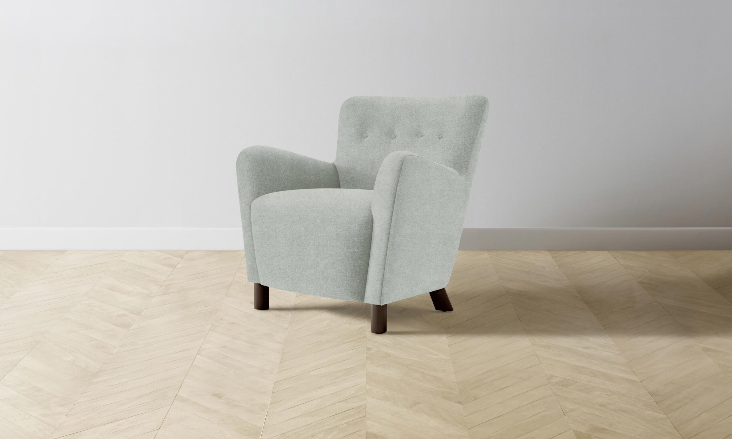 The Perry chair carries mid-century Scandinavian design influences into the home with its sinuous silhouette and button-tufted details. Tight upholstery and blind seams lend the design a smooth finish.