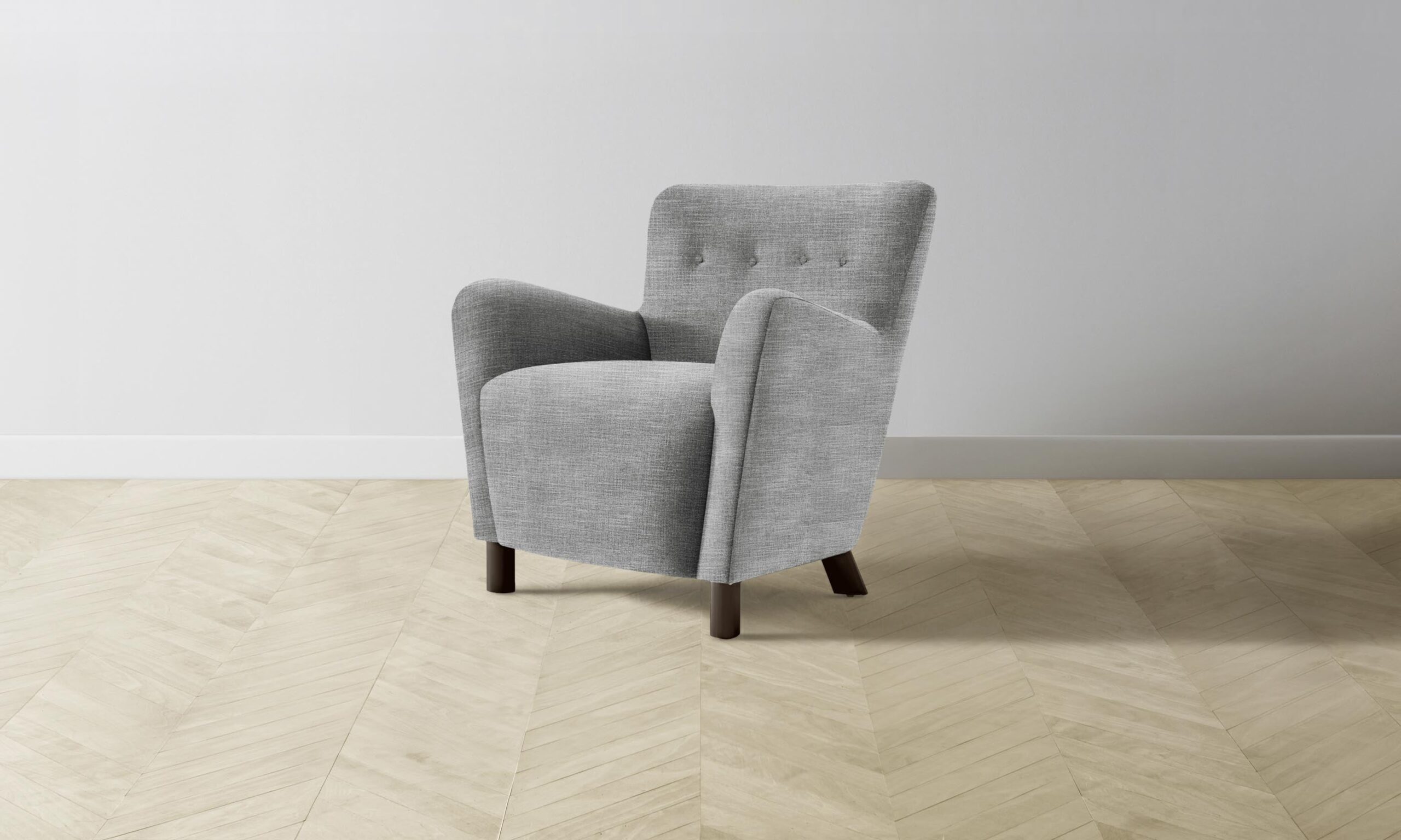 The Perry chair carries mid-century Scandinavian design influences into the home with its sinuous silhouette and button-tufted details. Tight upholstery and blind seams lend the design a smooth finish.