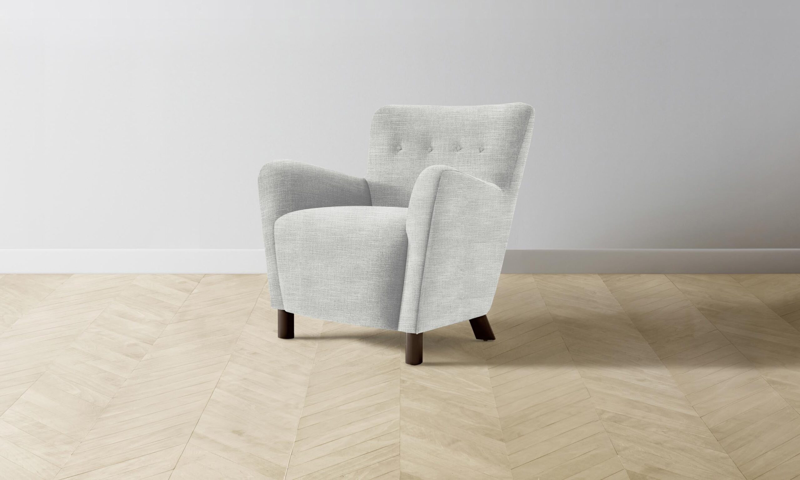 The Perry chair carries mid-century Scandinavian design influences into the home with its sinuous silhouette and button-tufted details. Tight upholstery and blind seams lend the design a smooth finish.