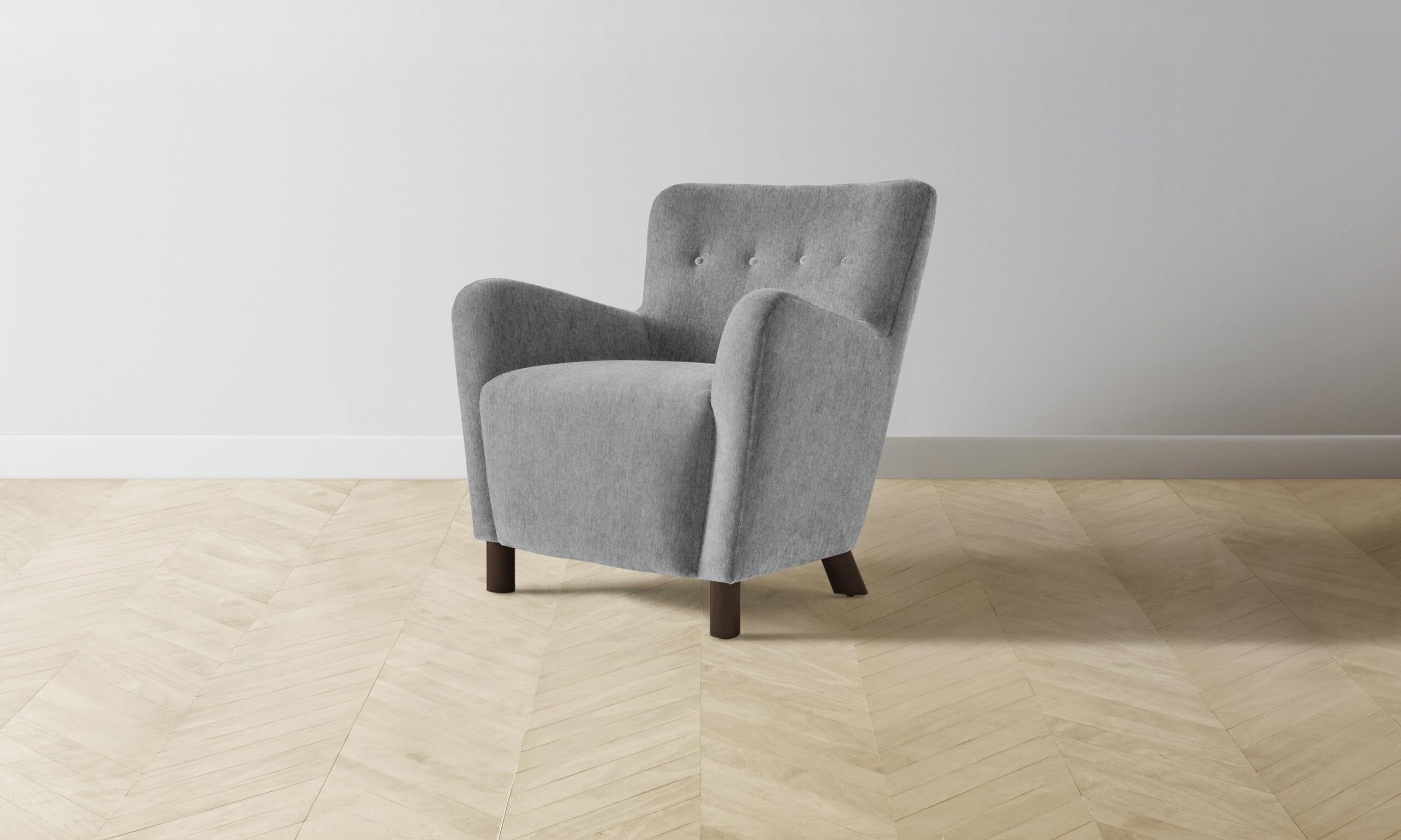 The Perry chair carries mid-century Scandinavian design influences into the home with its sinuous silhouette and button-tufted details. Tight upholstery and blind seams lend the design a smooth finish.
