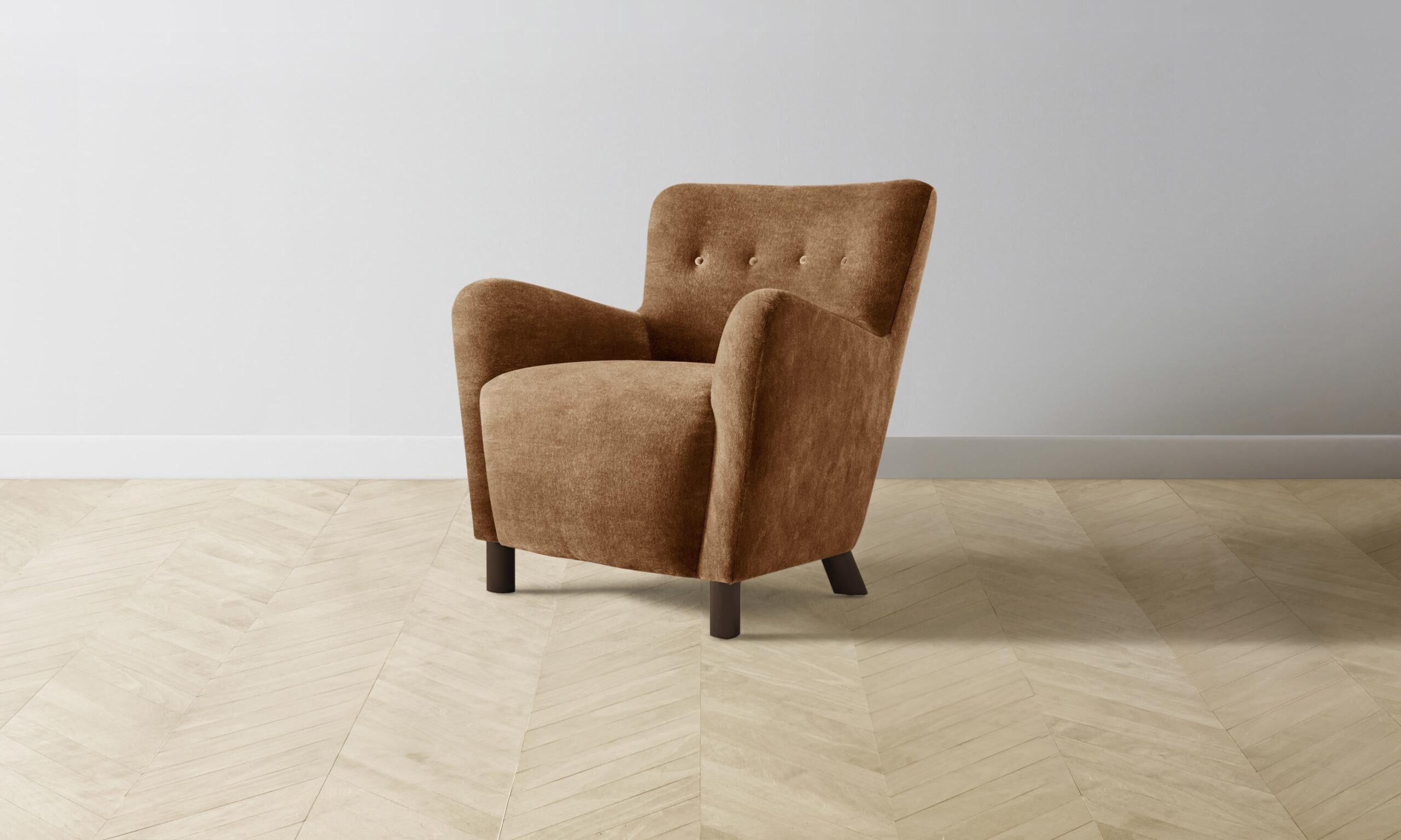 The Perry chair carries mid-century Scandinavian design influences into the home with its sinuous silhouette and button-tufted details. Tight upholstery and blind seams lend the design a smooth finish.