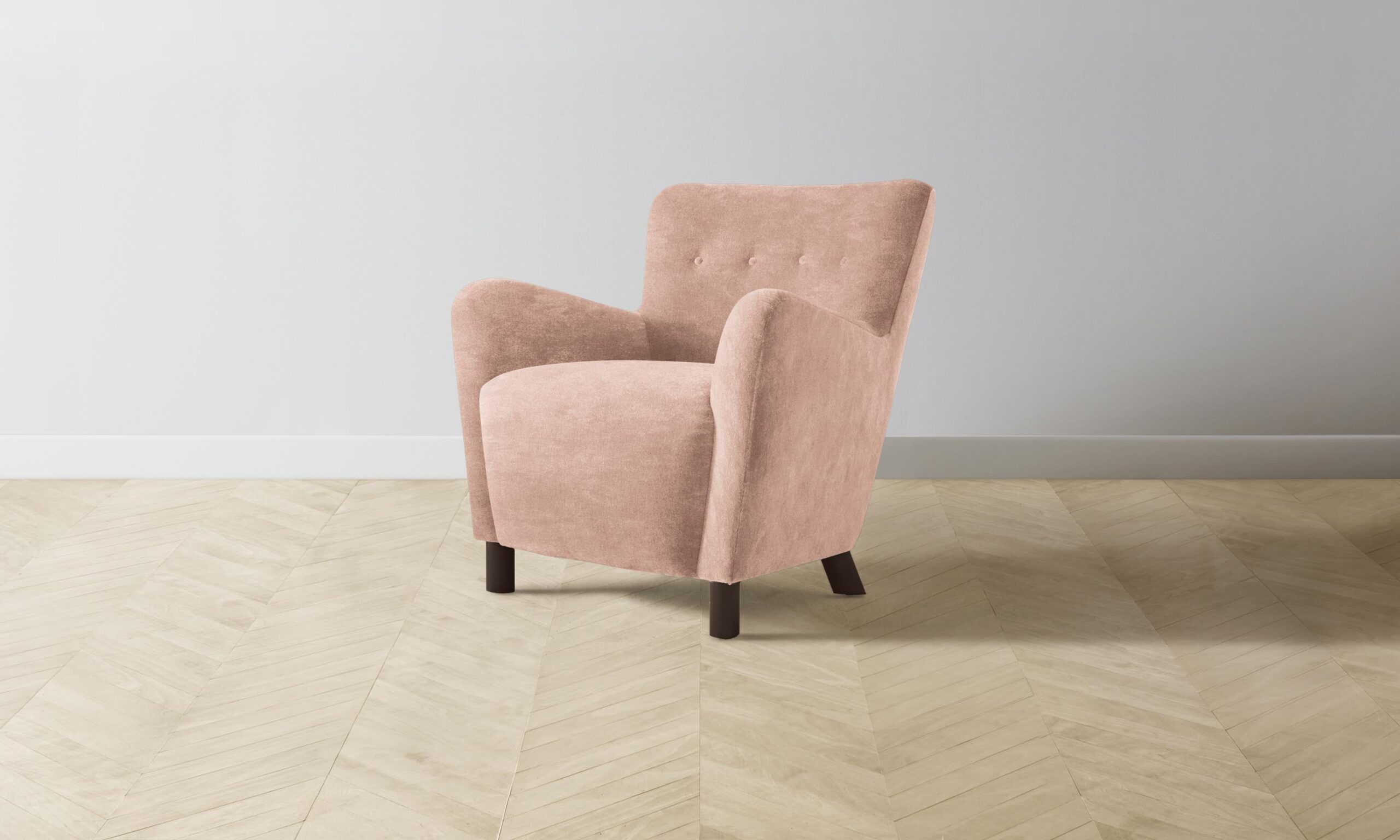 The Perry chair carries mid-century Scandinavian design influences into the home with its sinuous silhouette and button-tufted details. Tight upholstery and blind seams lend the design a smooth finish.