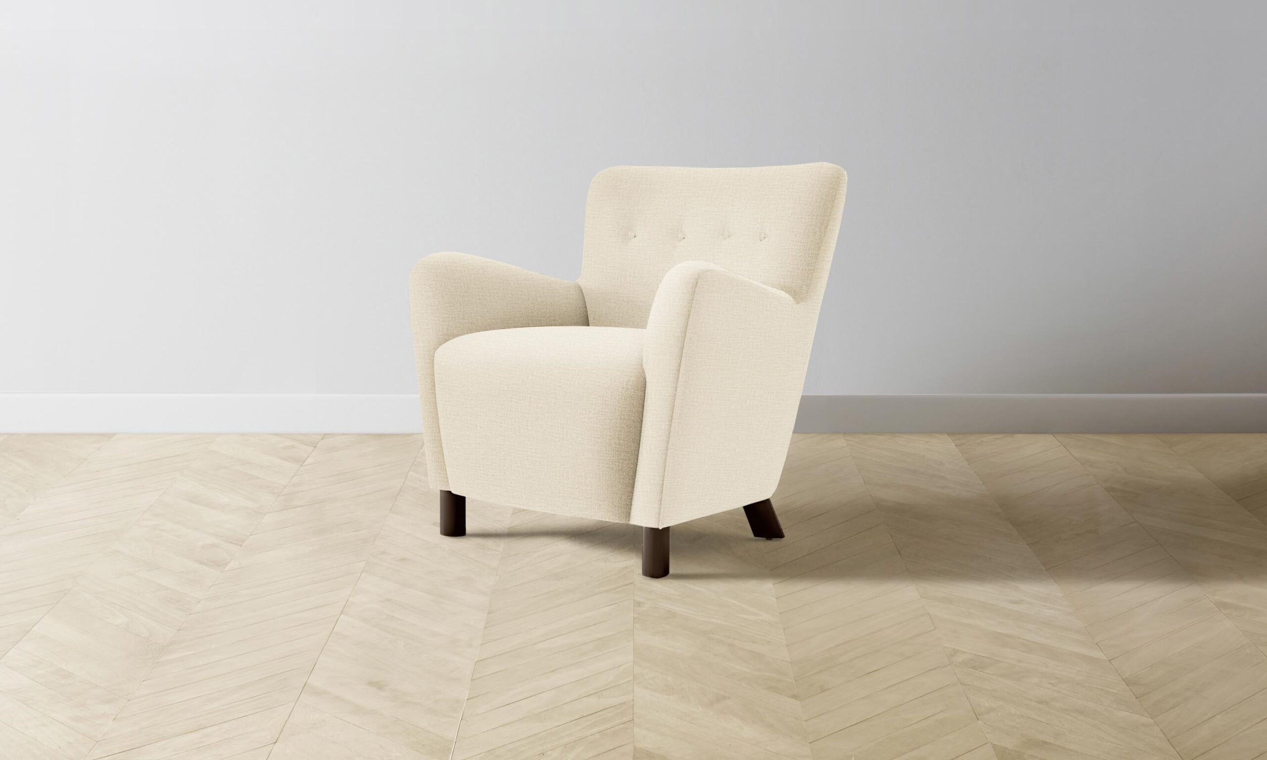 The Perry chair carries mid-century Scandinavian design influences into the home with its sinuous silhouette and button-tufted details. Tight upholstery and blind seams lend the design a smooth finish.