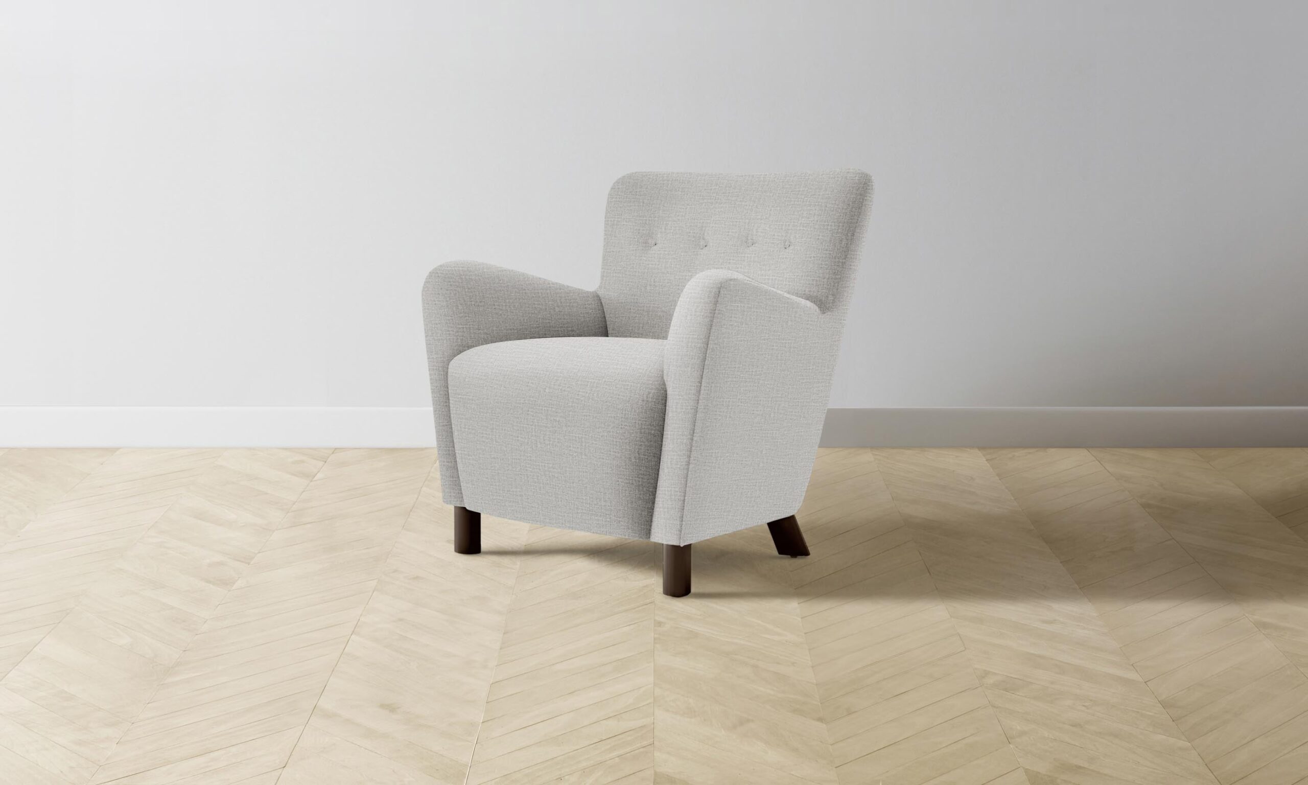 The Perry chair carries mid-century Scandinavian design influences into the home with its sinuous silhouette and button-tufted details. Tight upholstery and blind seams lend the design a smooth finish.