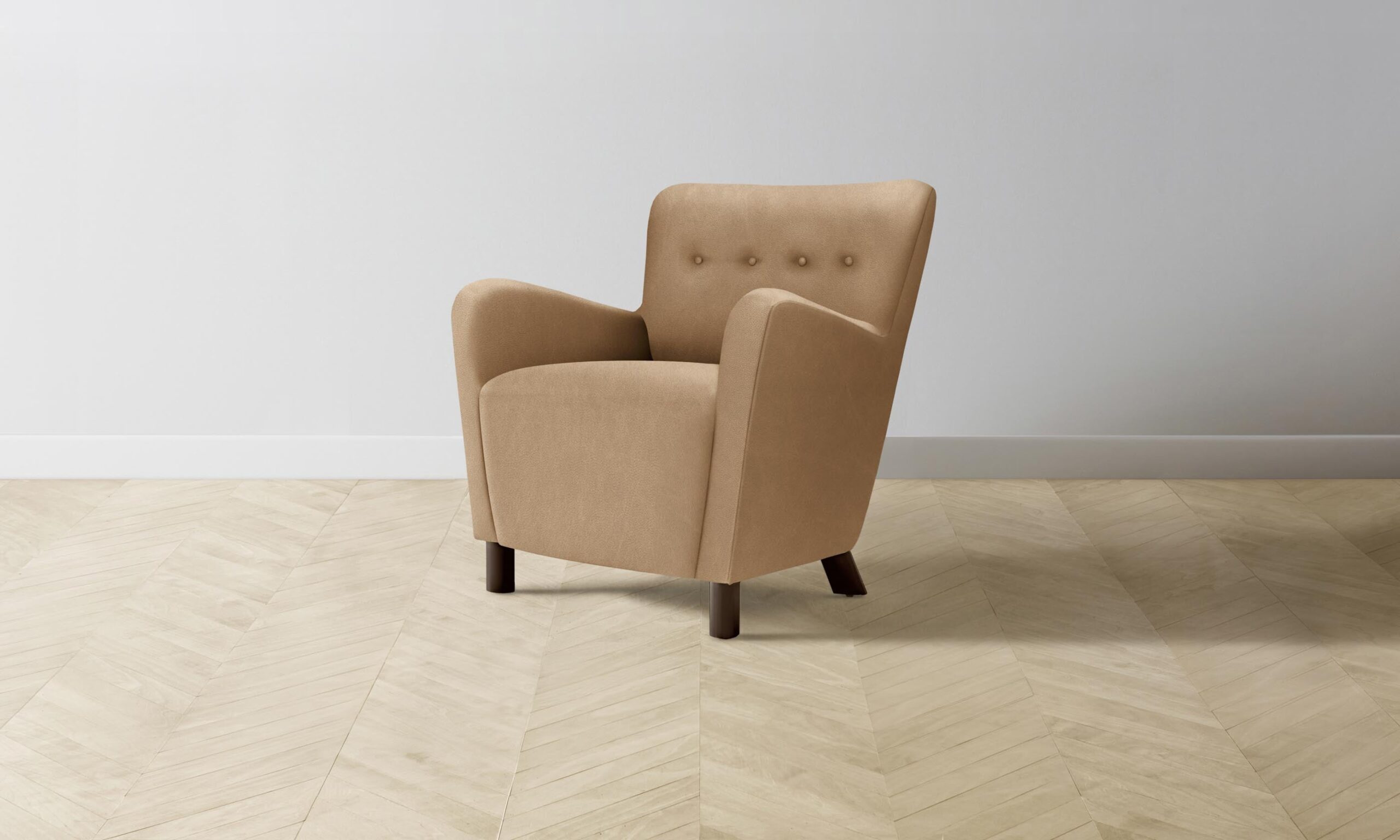 The Perry chair carries mid-century Scandinavian design influences into the home with its sinuous silhouette and button-tufted details. Tight upholstery and blind seams lend the design a smooth finish.