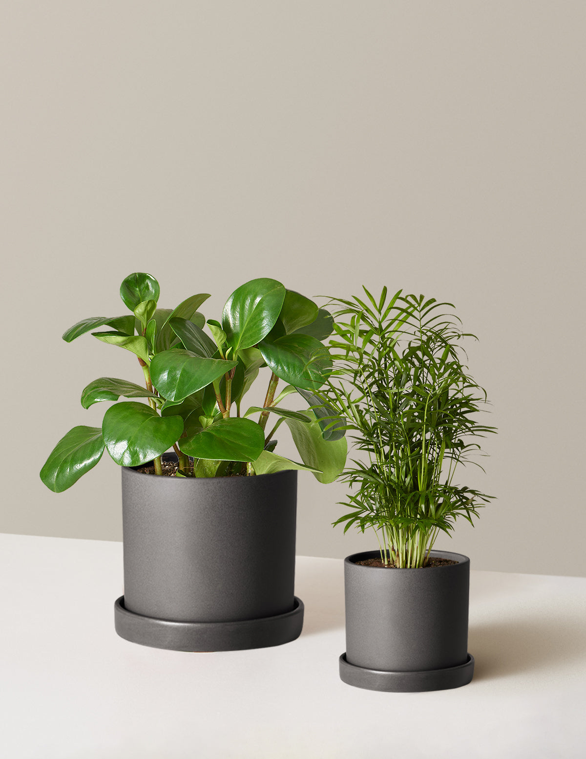 This pet-friendly duo pairs together two crowd favorites that even your furry friends will love. The Parlor Palm, an easy-care palm known for its air-purifying qualities, is paired with the Peperomia Obtusifolia.