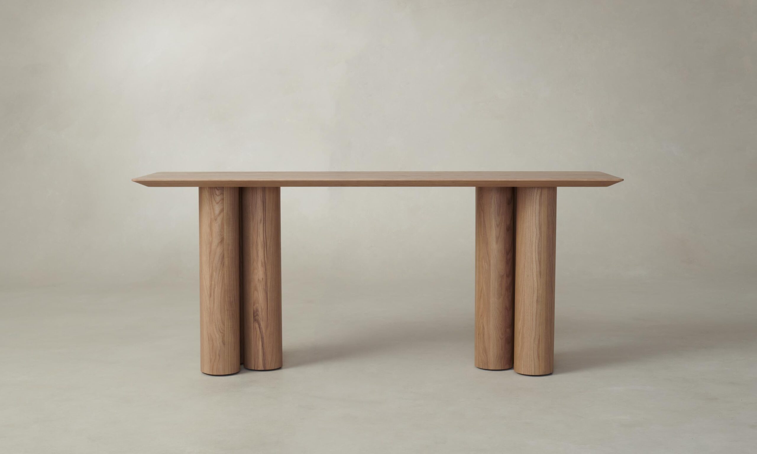 In the Reade console table, strong and sculptural forms collide. The design features a rectangular tabletop and columnar legs, each shaped from solid ash.