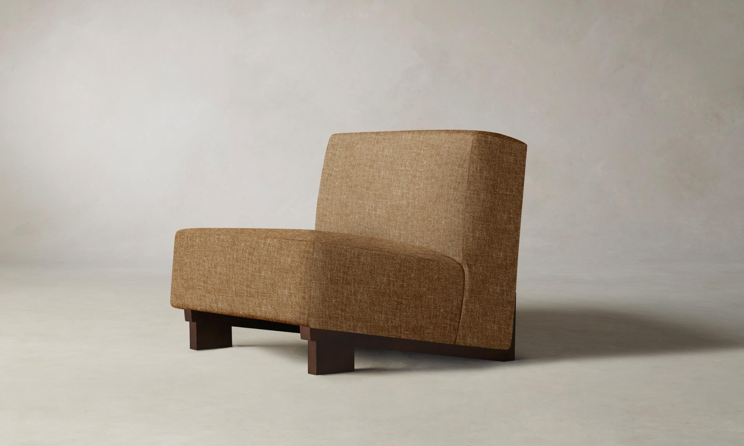 The Remsen chair’s bold proportions and streamlined silhouette are informed by Art Moderne design. It has a low-slung seat that sits at an angle atop a sculptural white oak base.