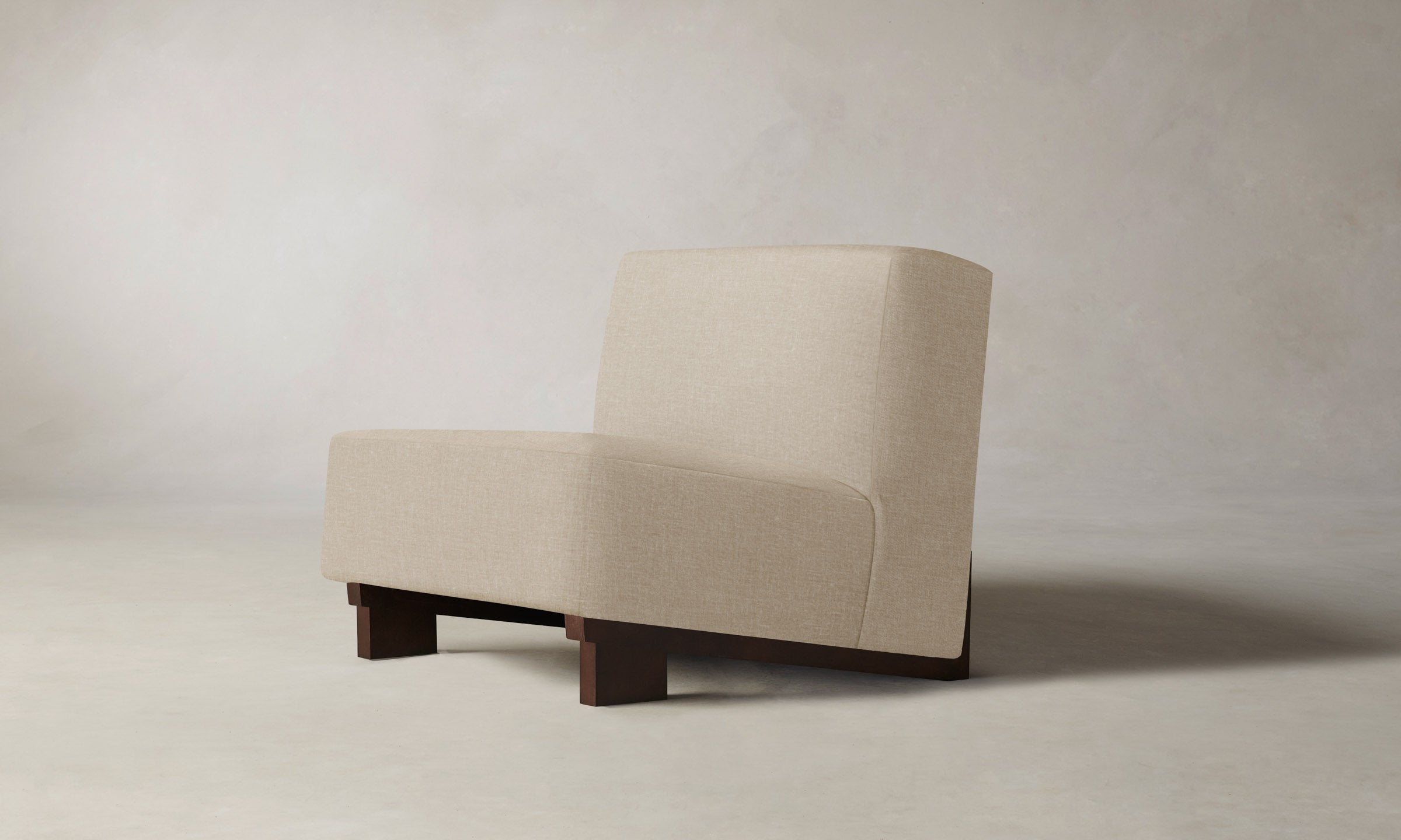 The Remsen chair’s bold proportions and streamlined silhouette are informed by Art Moderne design. It has a low-slung seat that sits at an angle atop a sculptural white oak base.
