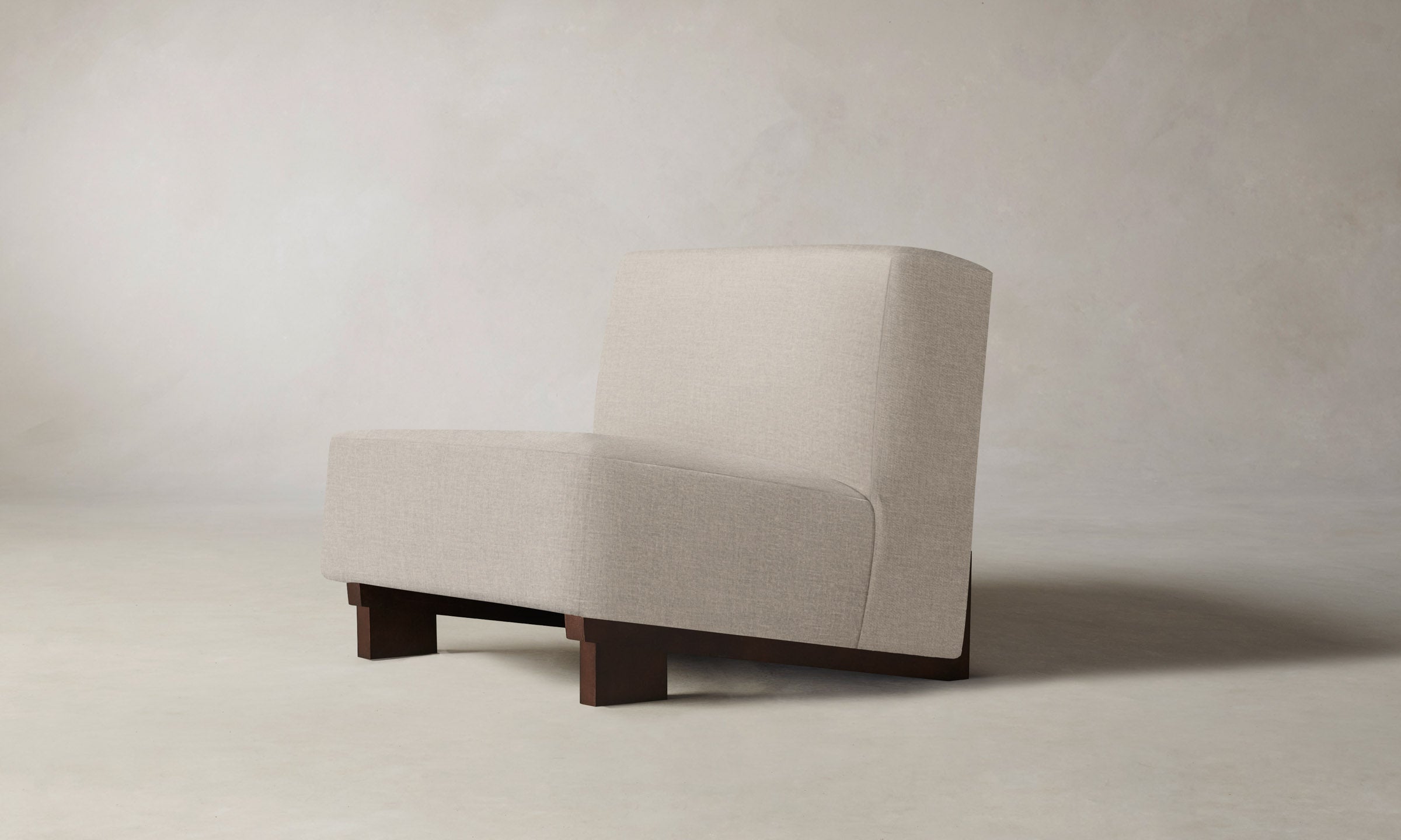 The Remsen chair’s bold proportions and streamlined silhouette are informed by Art Moderne design. It has a low-slung seat that sits at an angle atop a sculptural white oak base.