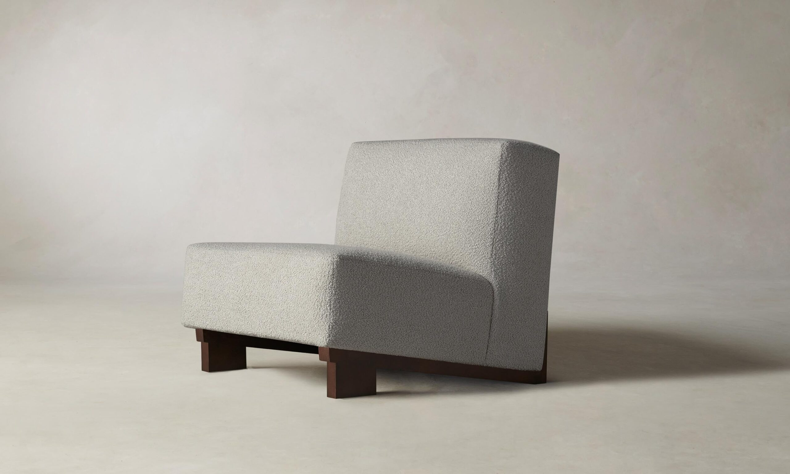 The Remsen chair’s bold proportions and streamlined silhouette are informed by Art Moderne design. It has a low-slung seat that sits at an angle atop a sculptural white oak base.