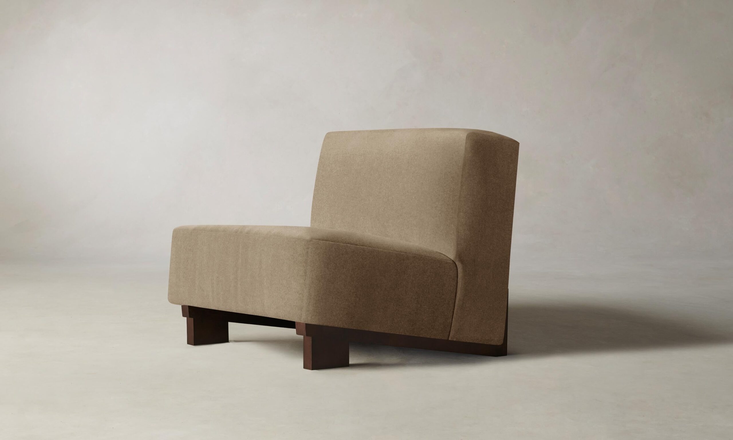 The Remsen chair’s bold proportions and streamlined silhouette are informed by Art Moderne design. It has a low-slung seat that sits at an angle atop a sculptural white oak base.