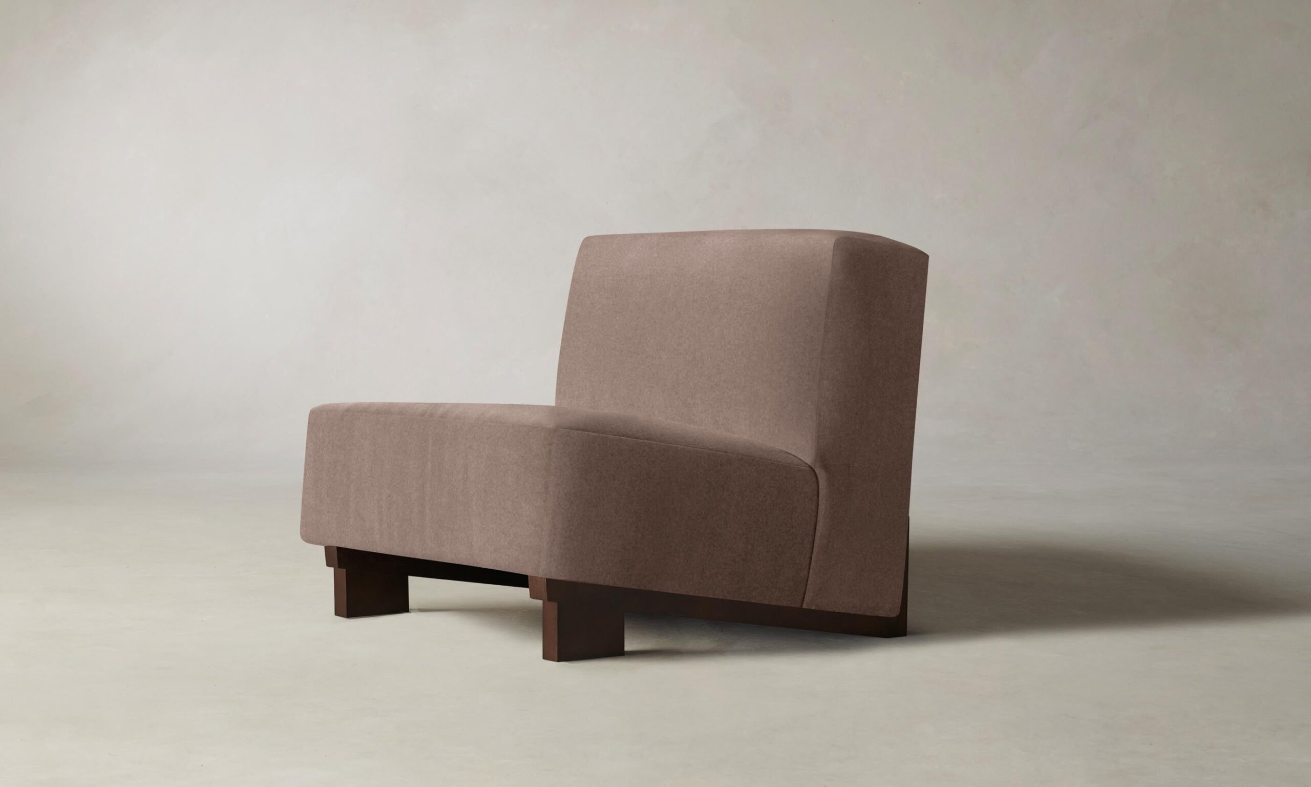 The Remsen chair’s bold proportions and streamlined silhouette are informed by Art Moderne design. It has a low-slung seat that sits at an angle atop a sculptural white oak base.