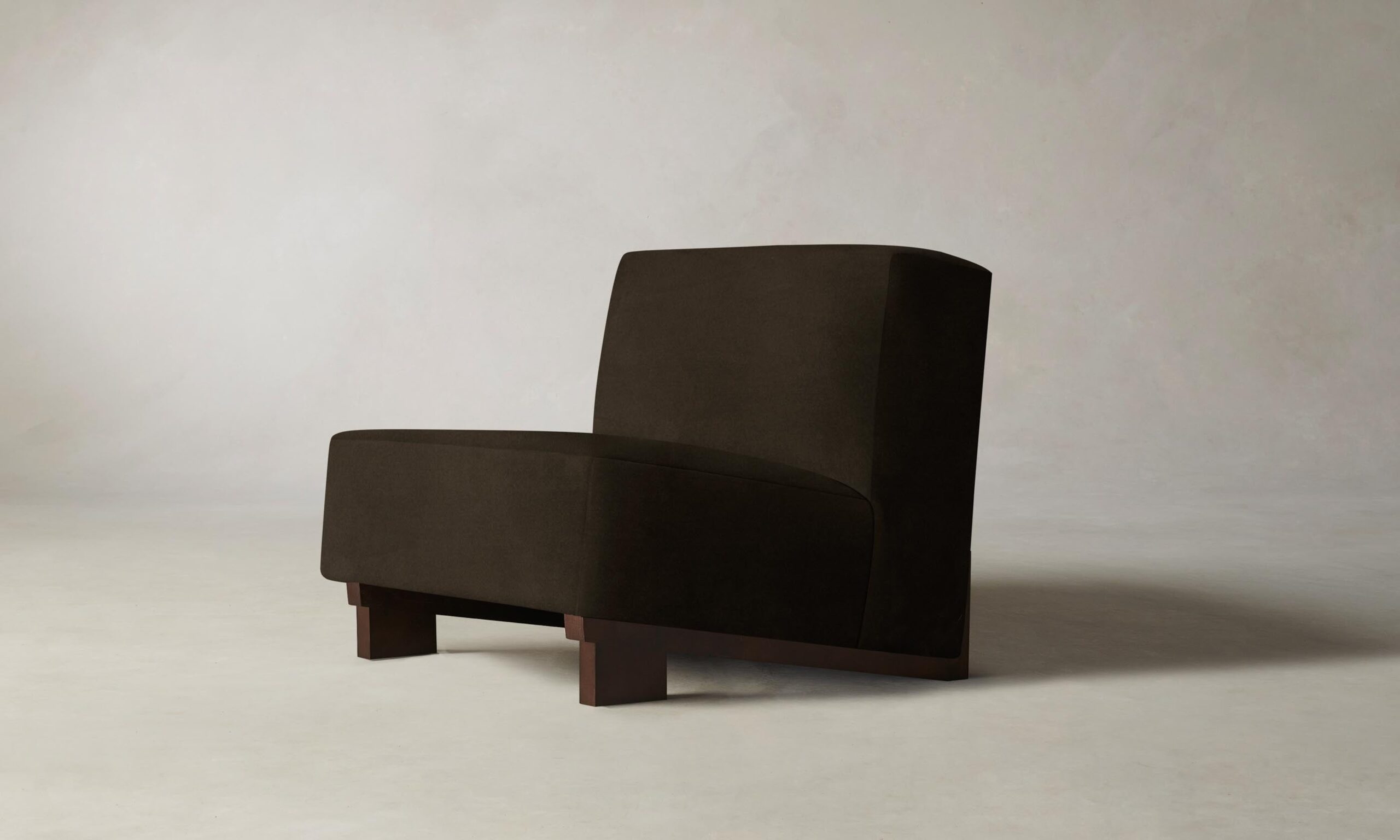 The Remsen chair’s bold proportions and streamlined silhouette are informed by Art Moderne design. It has a low-slung seat that sits at an angle atop a sculptural white oak base.