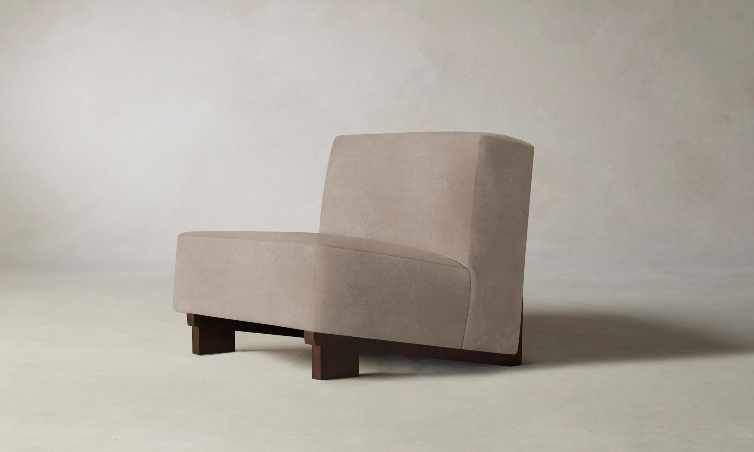 The Remsen chair’s bold proportions and streamlined silhouette are informed by Art Moderne design. It has a low-slung seat that sits at an angle atop a sculptural white oak base.