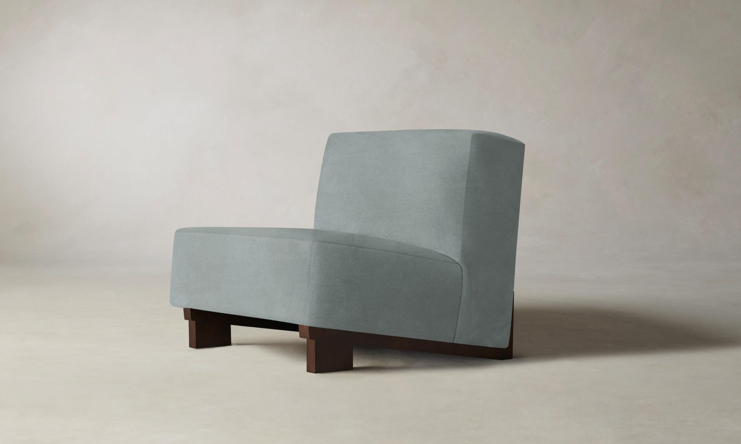 The Remsen chair’s bold proportions and streamlined silhouette are informed by Art Moderne design. It has a low-slung seat that sits at an angle atop a sculptural white oak base.